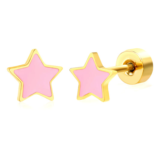 Thick 1.2*5.7mm pentagram yellow/pink/cyan oil drip 0.8*9mm pin Screw plug earrings gold color