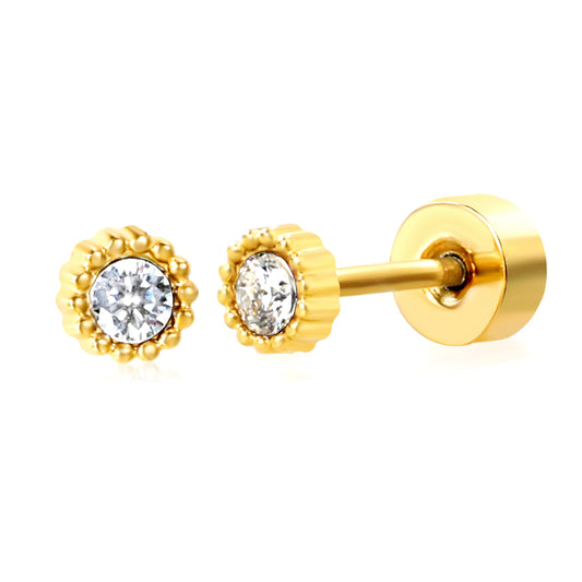 6.6*5.6mm small buds with white zirconium 0.8*9mm pin Screw-on earrings gold color
