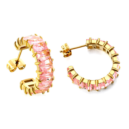 Regular price From $11.20 USDRegular priceUnit price / perSale price From $11.20 USDC-Shape with Two Grips Rectangle White/Purple/Green/Orange/Mixed/Pink Zirconium Earrings 6.8*21mm Steel Color/Golden Color