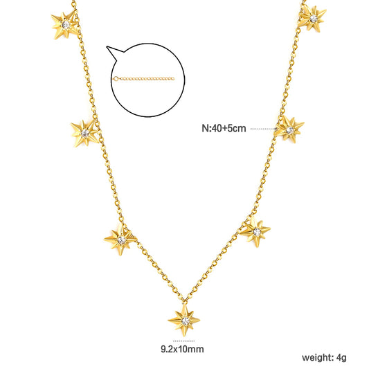 9.2 x 10mm eight-pointed star accessory (1 white zirconia), 0.3mm cross chain 40+5cm, 6mm round tag necklace, gold