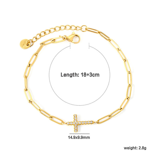 14.9*9.9mm Cross CNC White Zirconia 0.8x3x9 Long Flat Cross 18+3cm+6mm Round Tail Plaque Bracelet Gold Color