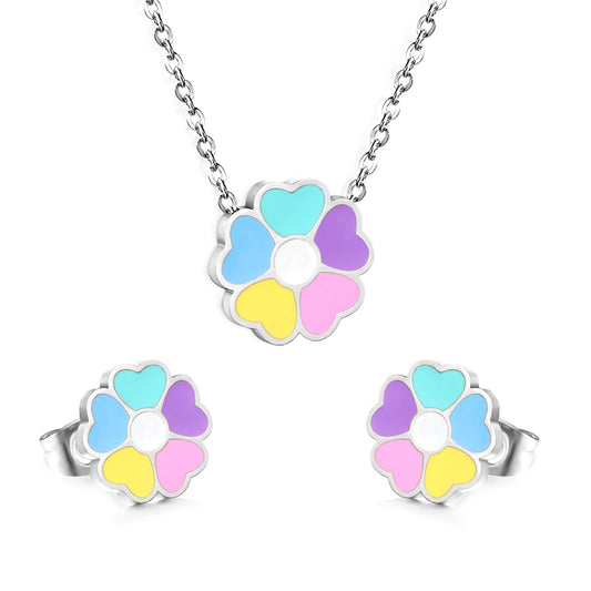Regular price From $5.14 USDRegular priceUnit price / perSale price From $5.14 USDColorful Flowers Set Steel/Gold Earrings:10.4*10.4mm Pendant:12.2*11.8mm 0.3 Cross Chain 42+5cm+6mm Round Plaque