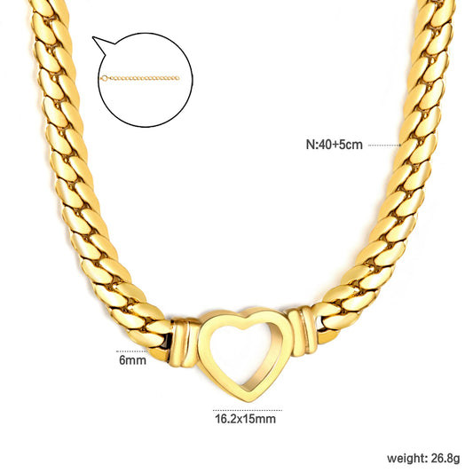 16.2 x 15mm hollow heart-shaped pendant with 6mm gold dragon chain, 40+5cm+6mm round pendant necklace, gold