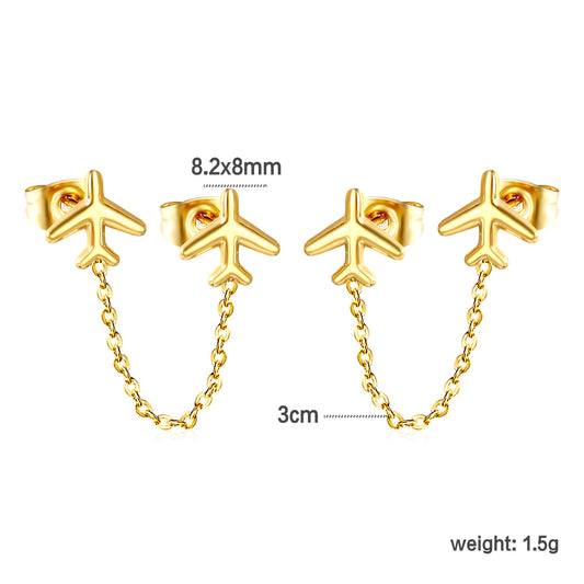 8.2*8mm Airplane+03 Cross Chain 30mm Accessories Earrings Golden