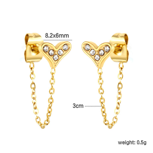 8.2*6mm heart shape with white zirconium+03 cross chain 30mm accessories Earrings gold color