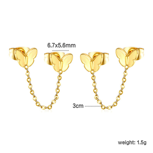 6.7*5.6mm Butterfly+03 Cross Chain 30mm Accessories Earrings Gold color