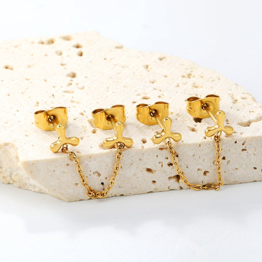 6.6*5.8mm small grass buds with white zirconium + 03 cross chain 30mm accessories earrings Gold color
