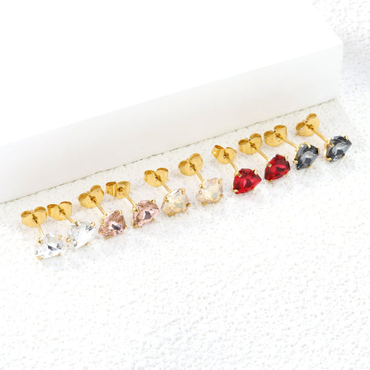 Regular price $13.30 USDRegular priceUnit price / perSale price $13.30 USD3 pairs of white/mineral black/red/light pink/champagne color 7mm equilateral triangle diamond earrings set Gold color