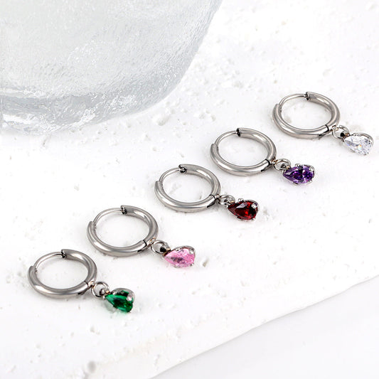 1.5x8mm I.D. earrings + 3.6*5mm white/purple/red/pink/green zirconium drop earrings gold/steel color