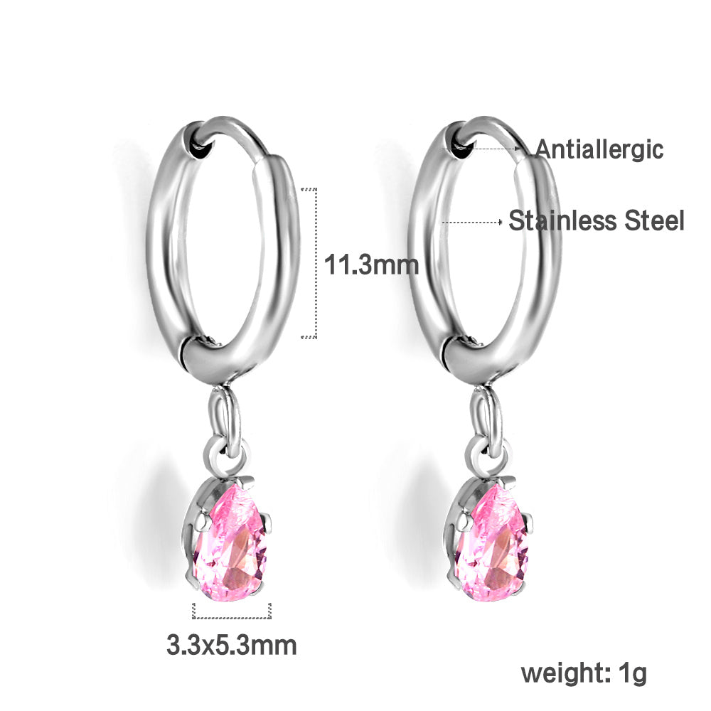 1.5x8mm I.D. earrings + 3.6*5mm white/purple/red/pink/green zirconium drop earrings gold/steel color