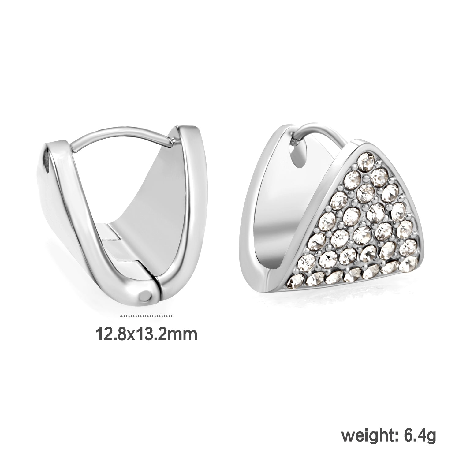 12.8*13.2mm triangle dumplings with white diamonds earrings steel color / gold color