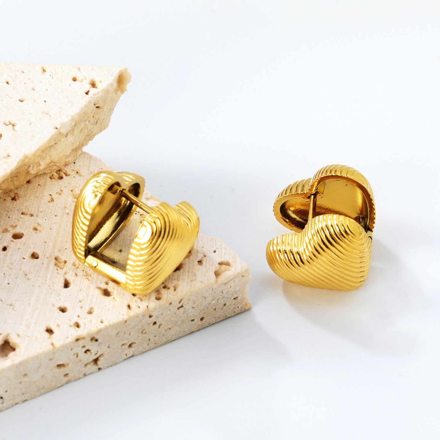 These 15.4*14mm Vertical Heart Earrings make a stunning addition to any jewelry collection. Crafted in elegant gold color, these earrings are 15.4*14mm in size and feature a unique vertical heart design. Perfect for any occasion, these earrings are versatile and timeless. Elevate your style with these beautiful earrings.