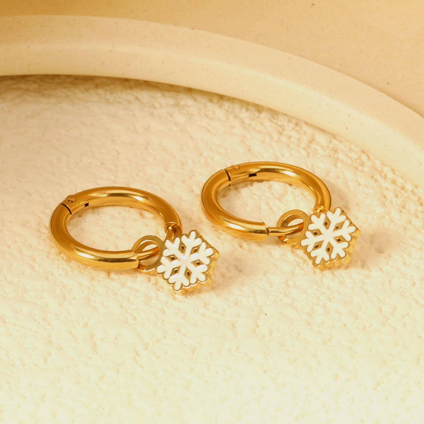 2*10mm circle + 7*9.5mm snowflake earrings with white oil drops steel color/golden color