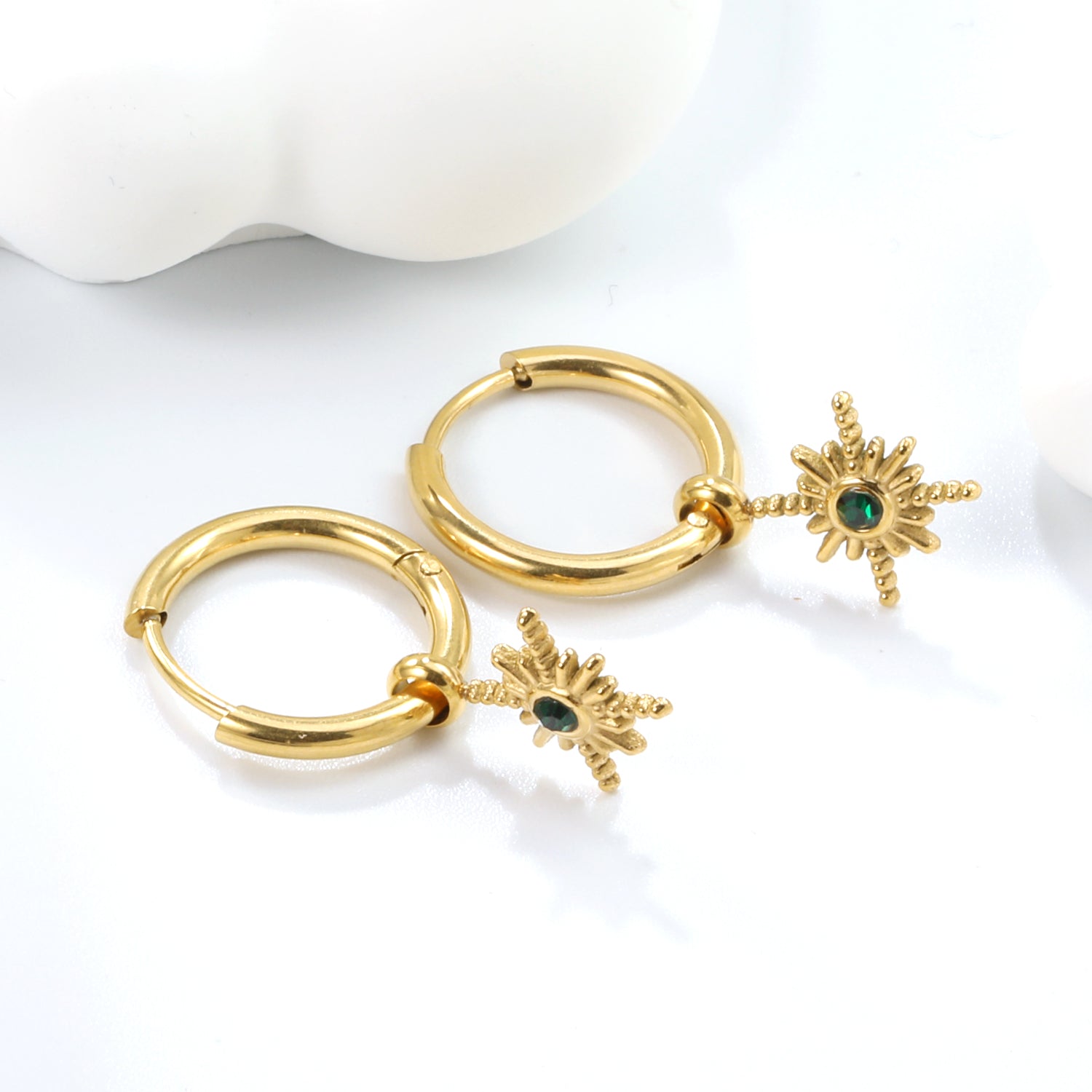 2*12mm I.D. earrings+11.2mm Polaris with white pearl/white/green zirconia earrings Gold color