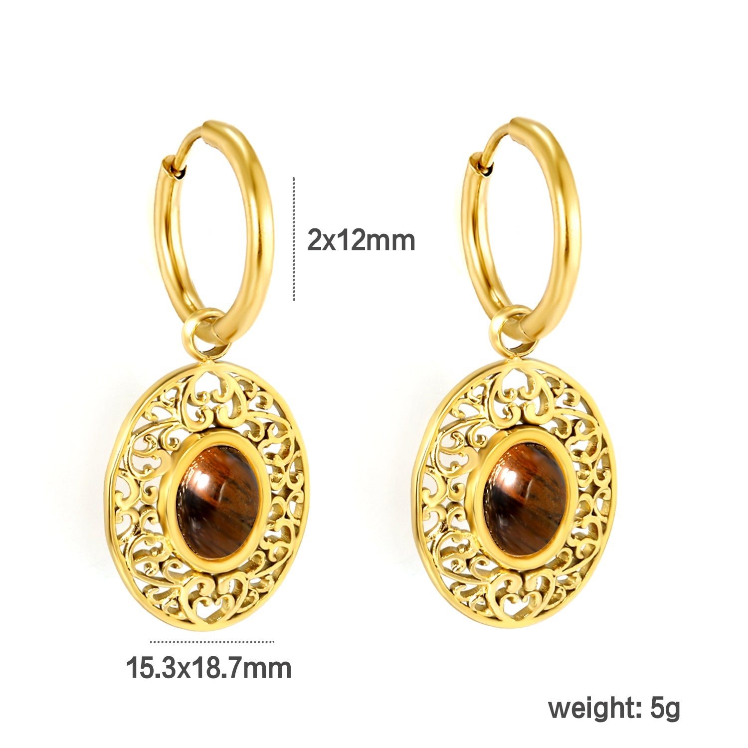 2*12mm I.D. earrings + 15.3*18.7mm oval pattern face band imitation white pearl/pinkstone/tiger's eye stone accessories Earrings Gold color