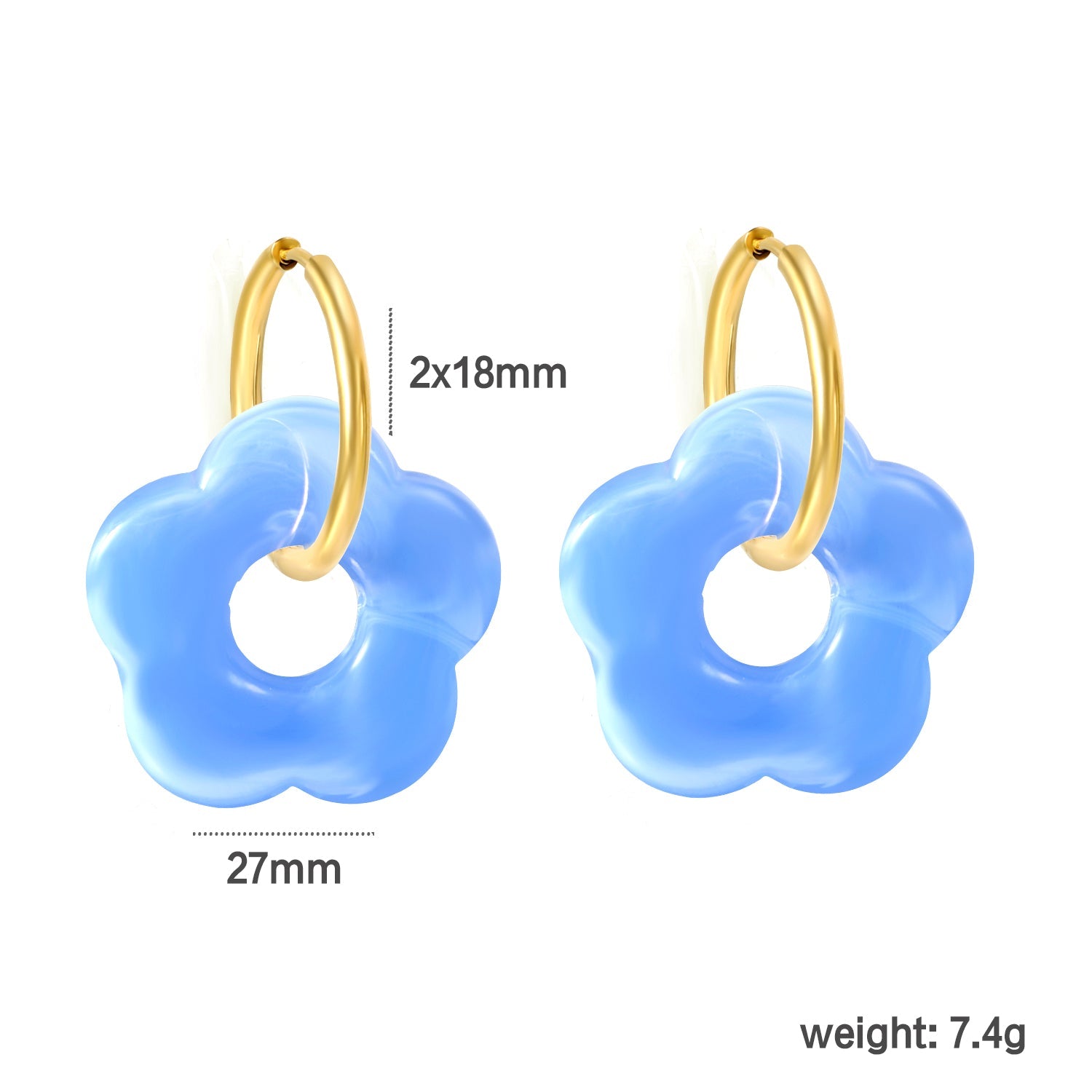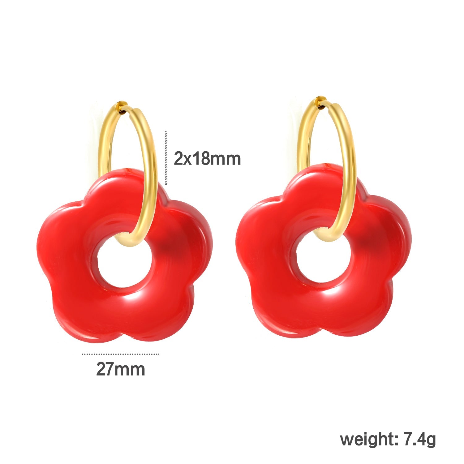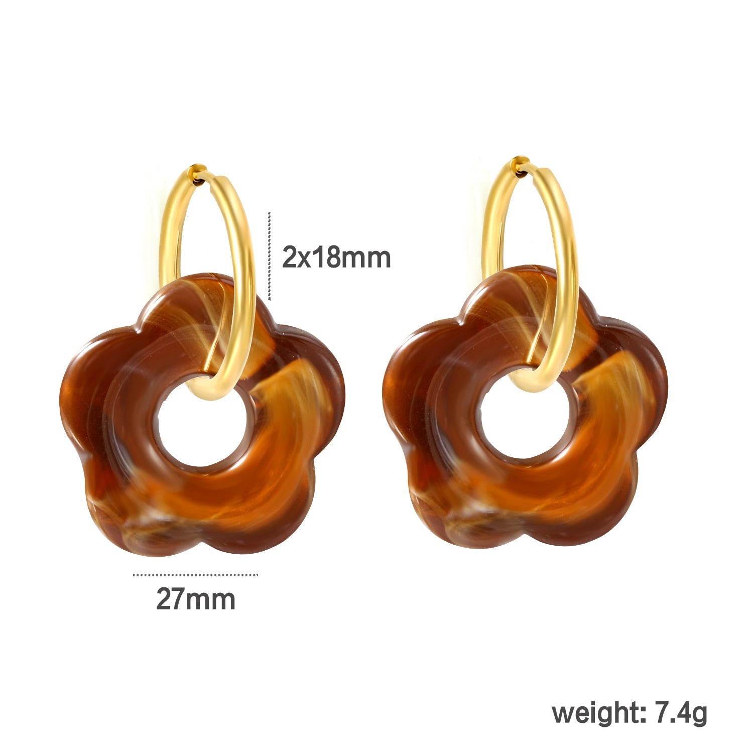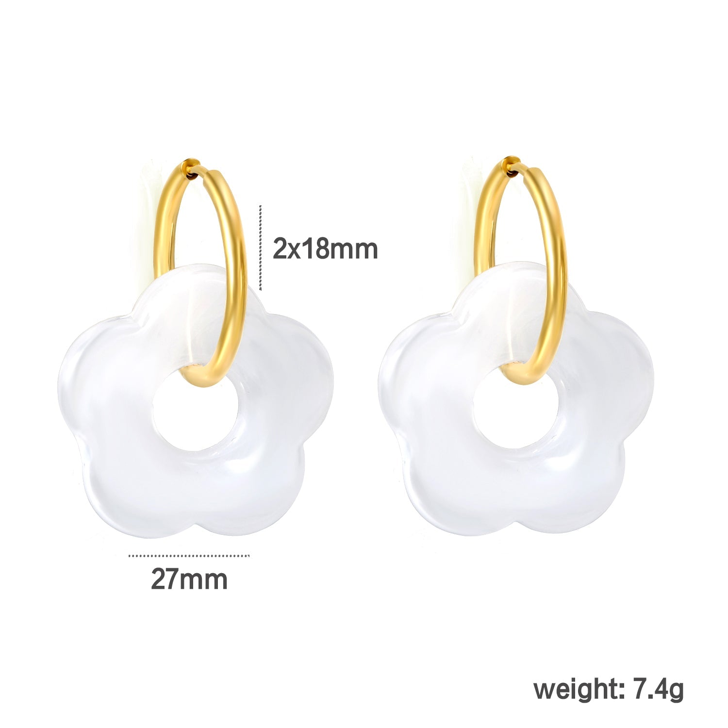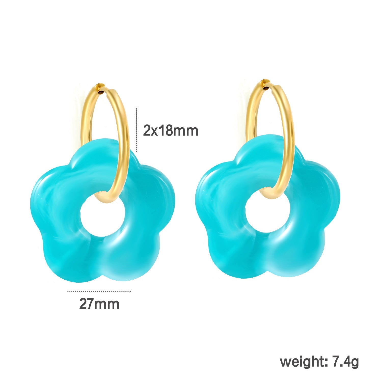 2*18mm I.D. Earrings + 27mm White/Red/Blue/Yellow/Coffee/Pink/Peacock Blue/Peacock Green Resin Flower Earrings Gold Color