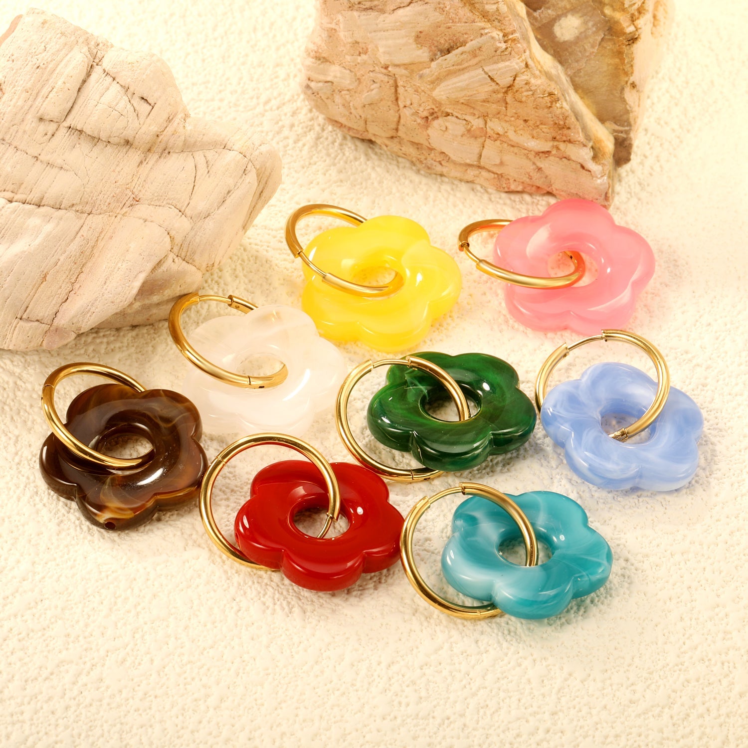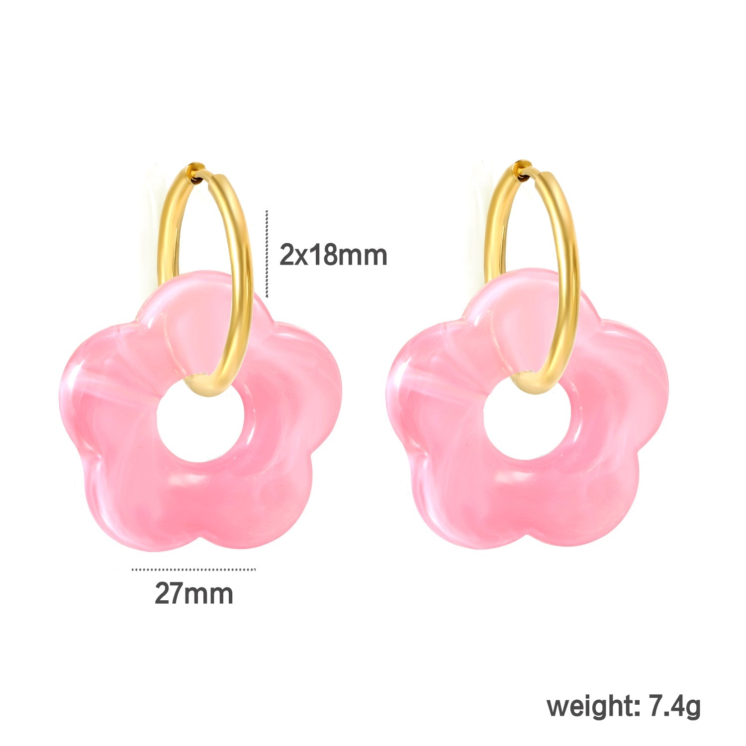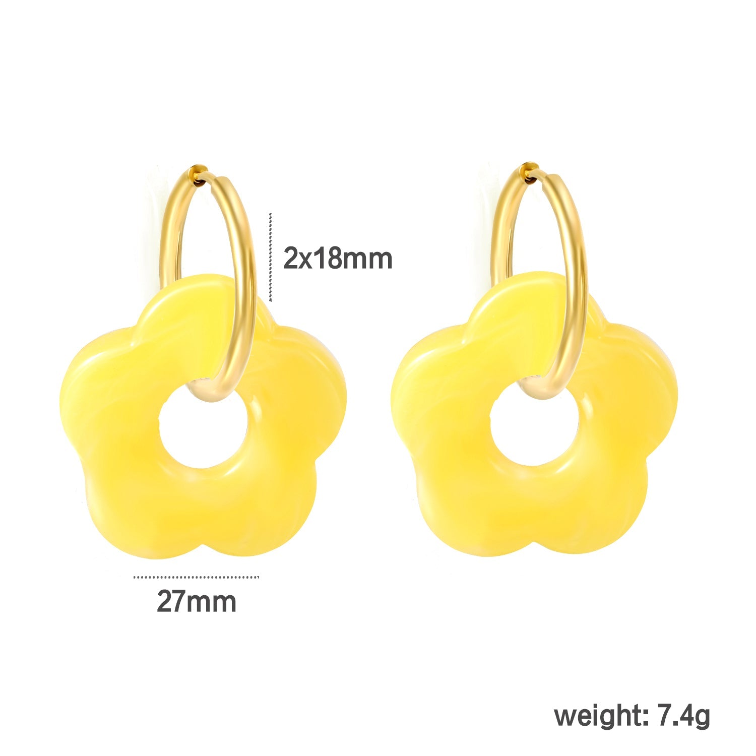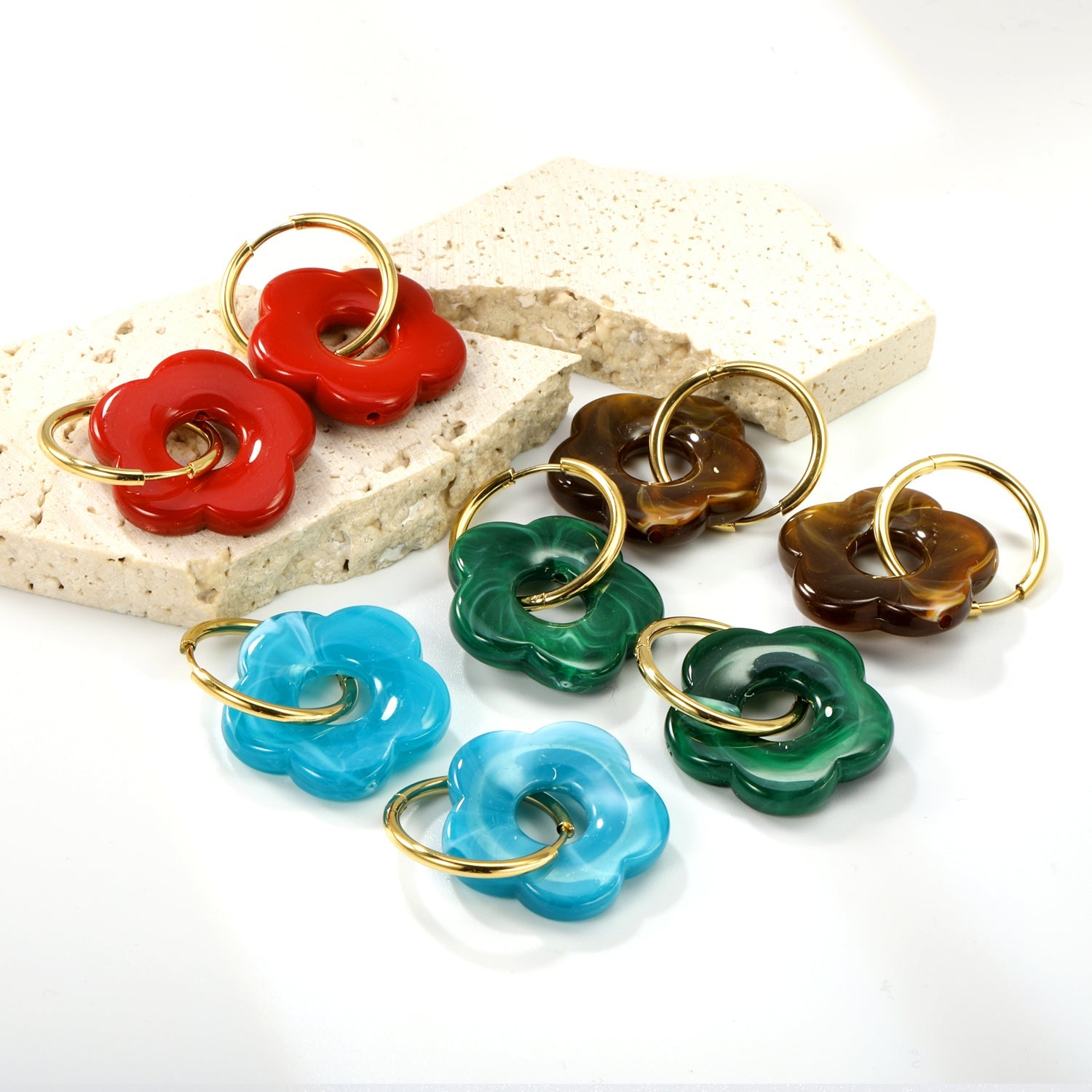 2*18mm I.D. Earrings + 27mm White/Red/Blue/Yellow/Coffee/Pink/Peacock Blue/Peacock Green Resin Flower Earrings Gold Color