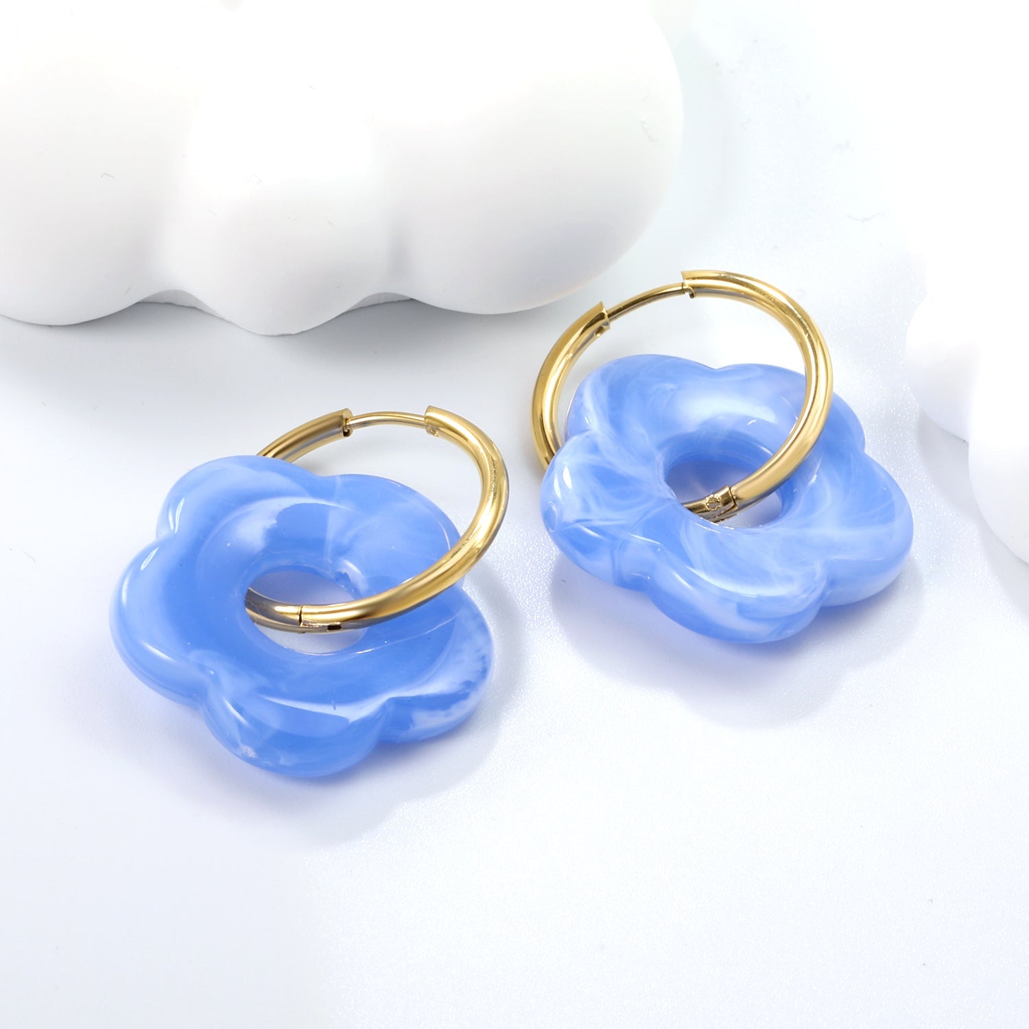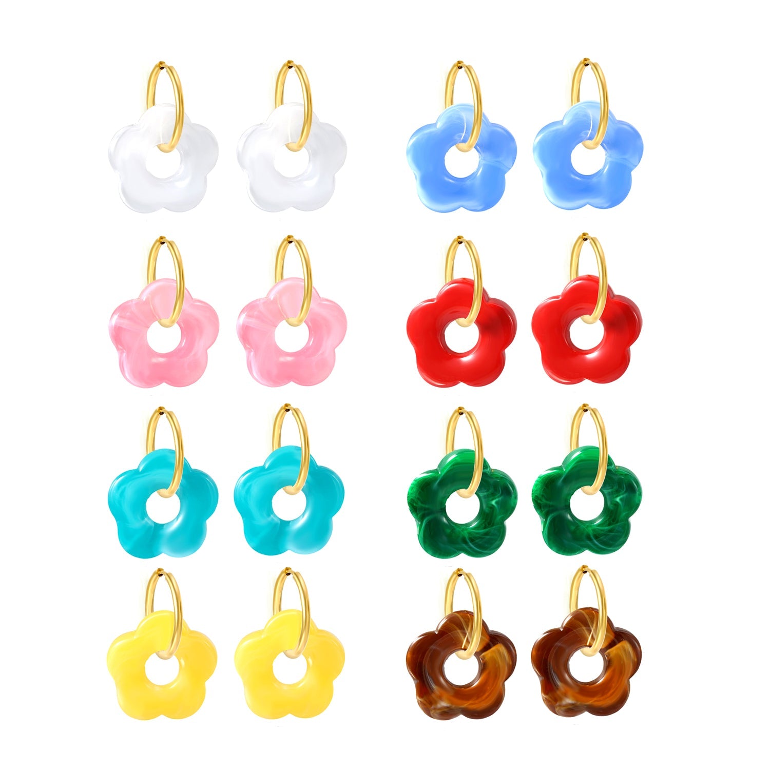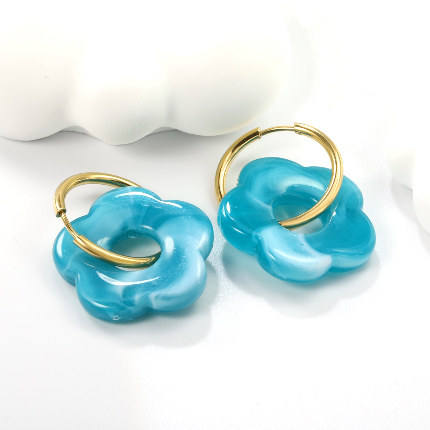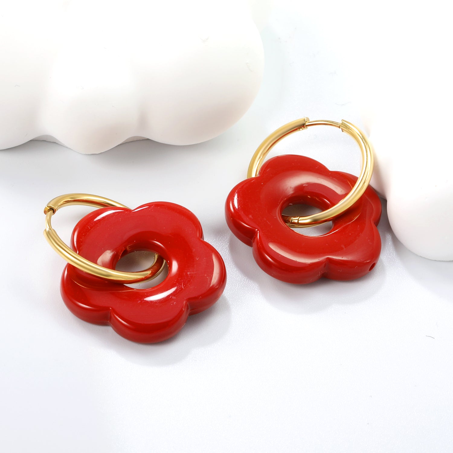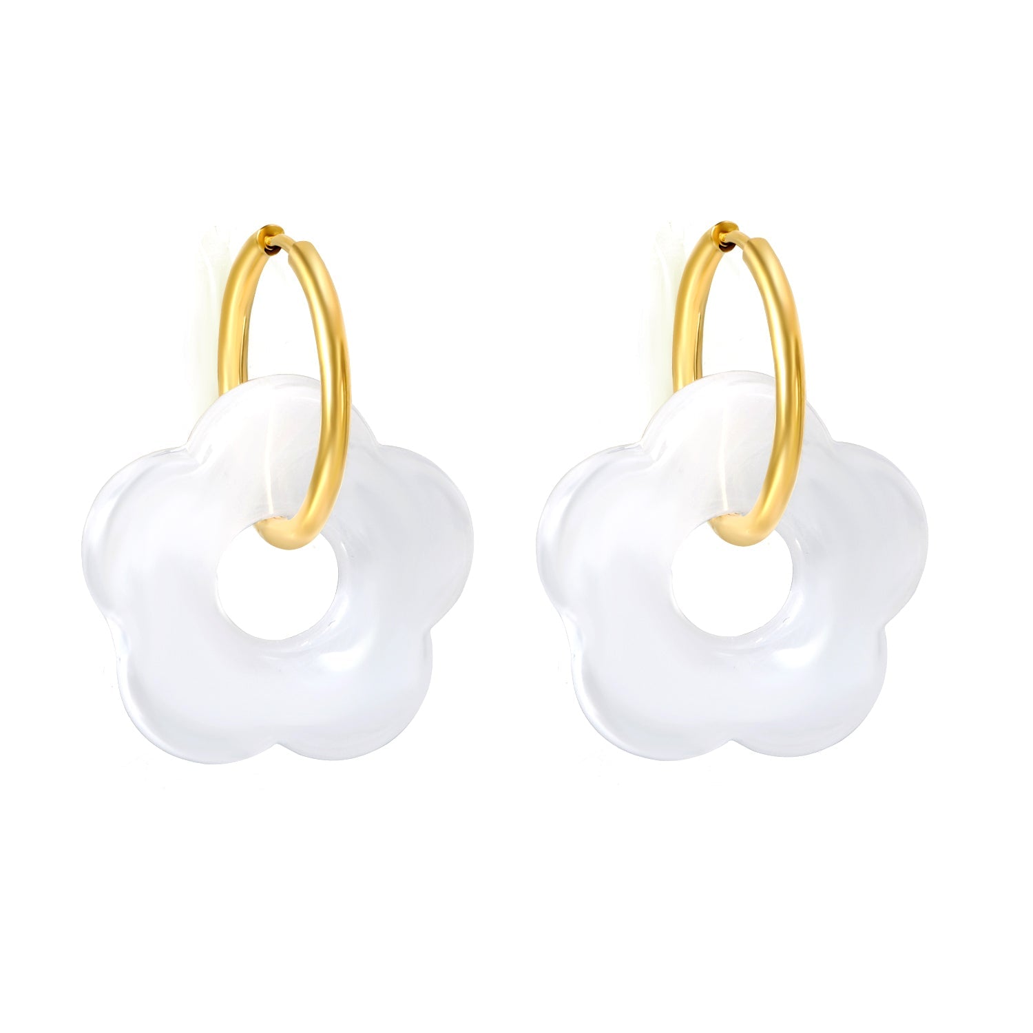 2*18mm I.D. Earrings + 27mm White/Red/Blue/Yellow/Coffee/Pink/Peacock Blue/Peacock Green Resin Flower Earrings Gold Color