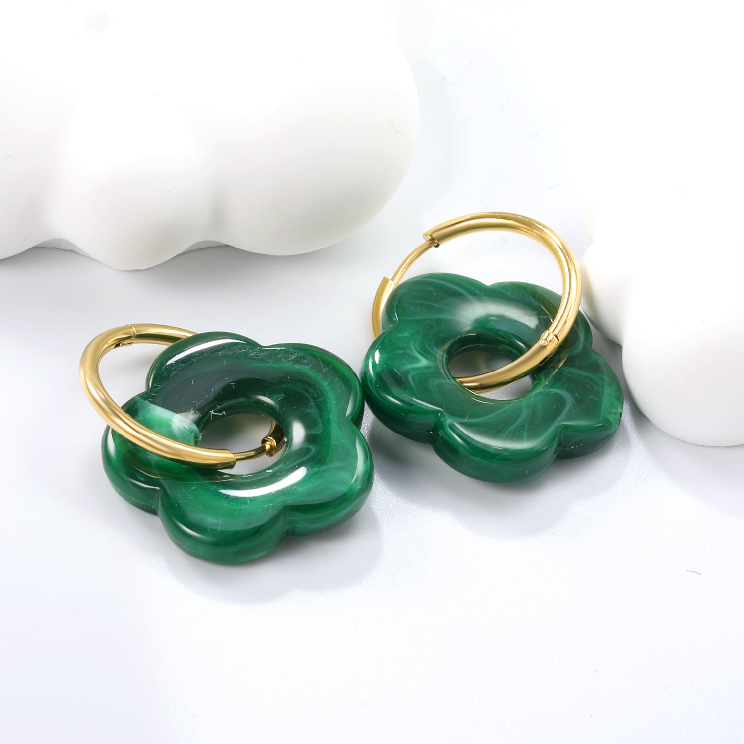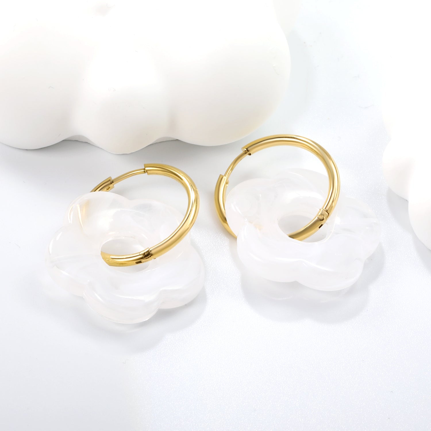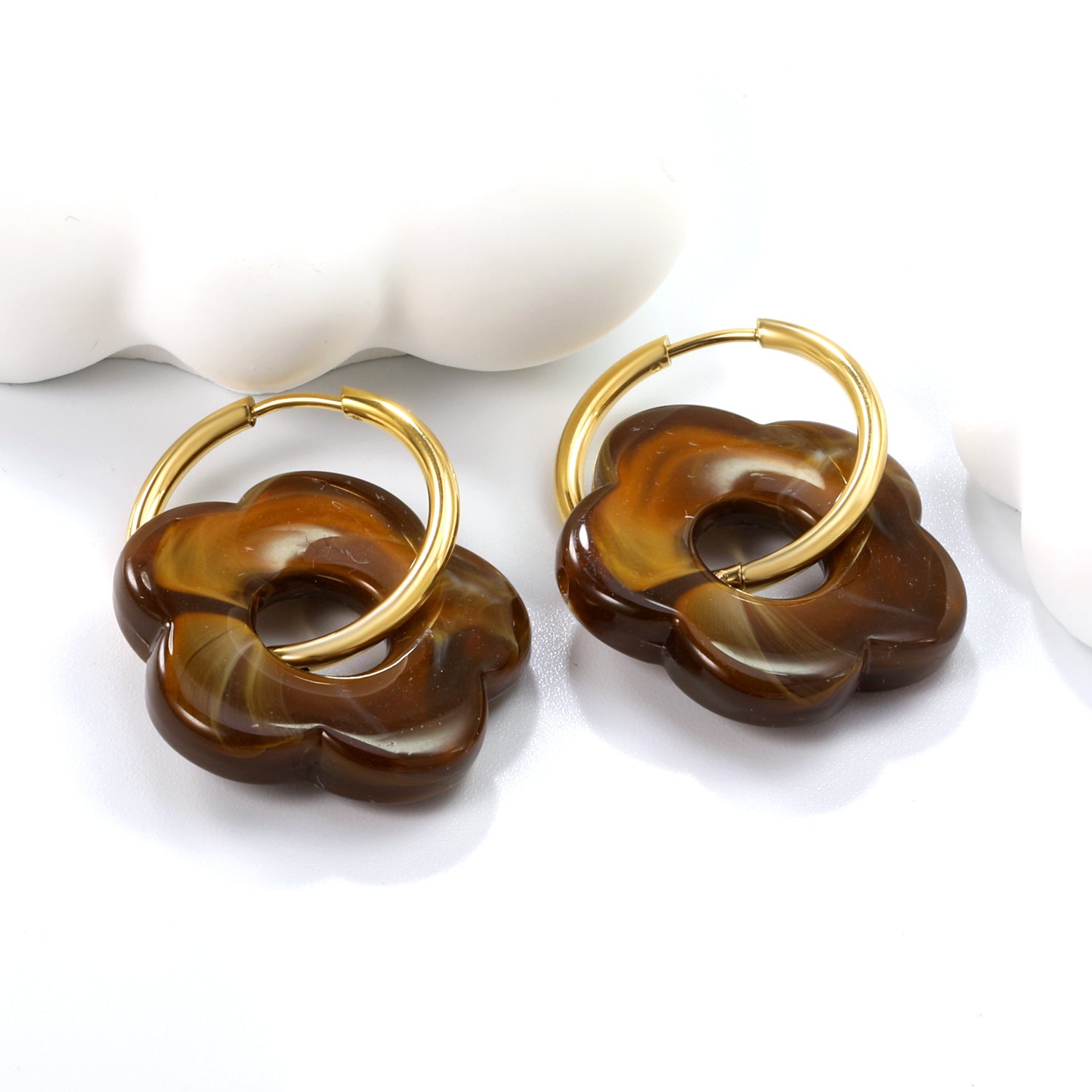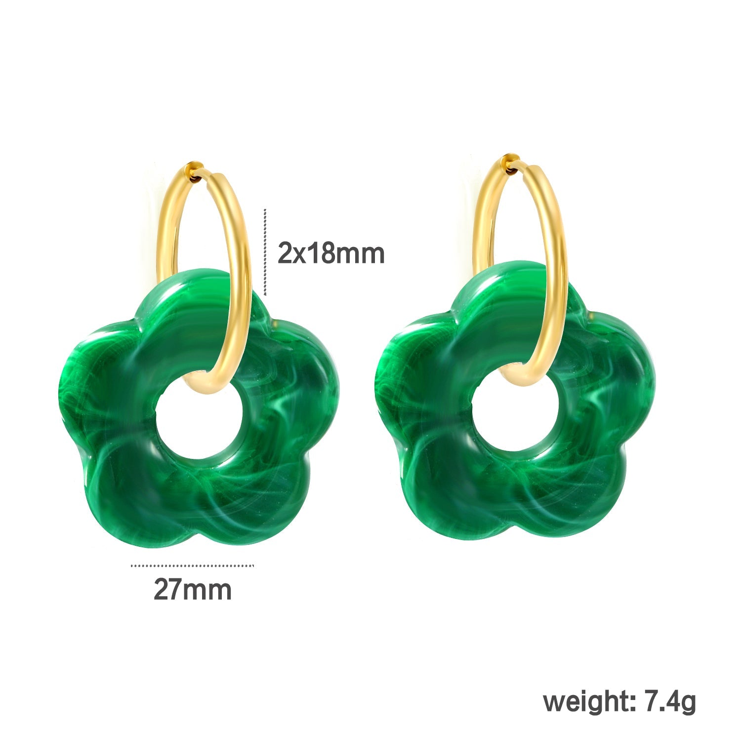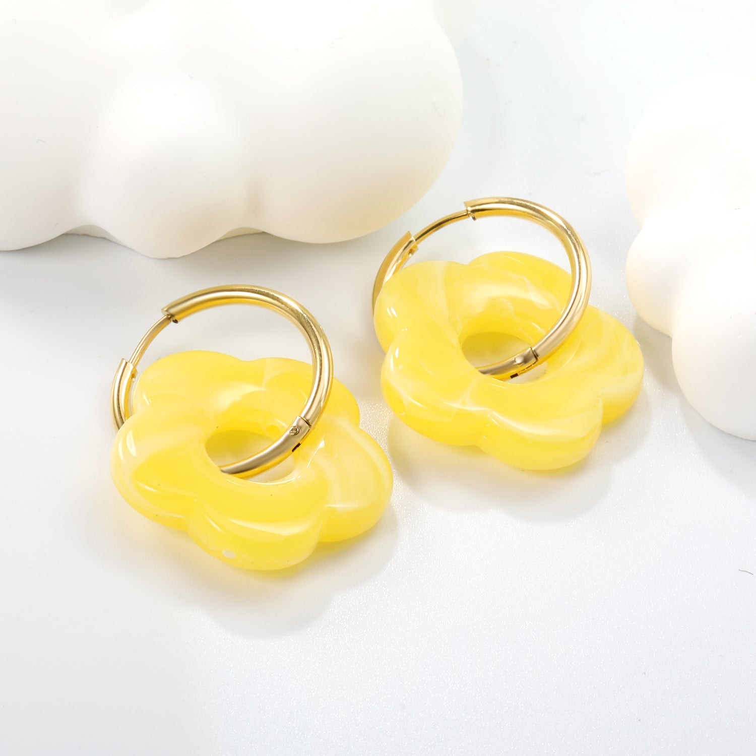 2*18mm I.D. Earrings + 27mm White/Red/Blue/Yellow/Coffee/Pink/Peacock Blue/Peacock Green Resin Flower Earrings Gold Color