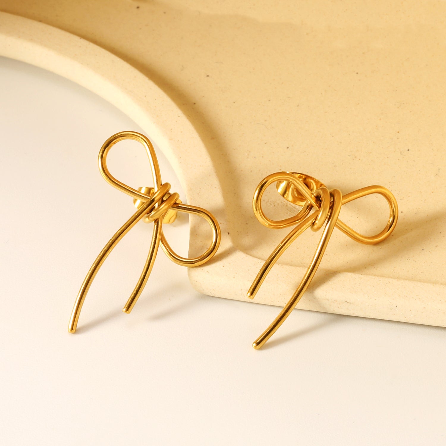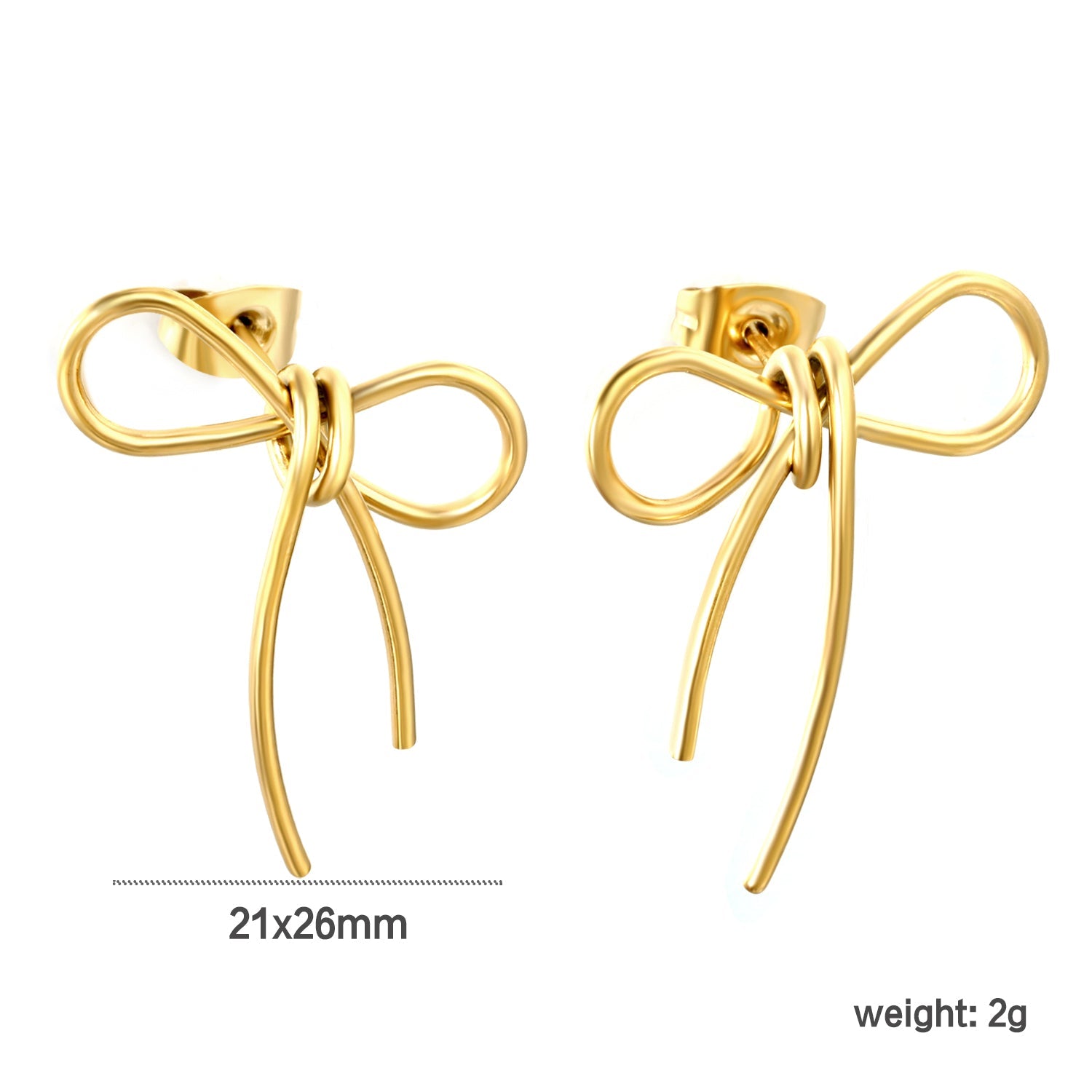 Crafted with a delicate yet stylish design, these 21*26mm bow earrings in gold color are the perfect accessory for any outfit. Made with high-quality materials, they are both durable and elegant. Add a touch of sophistication to your look with these stunning earrings.