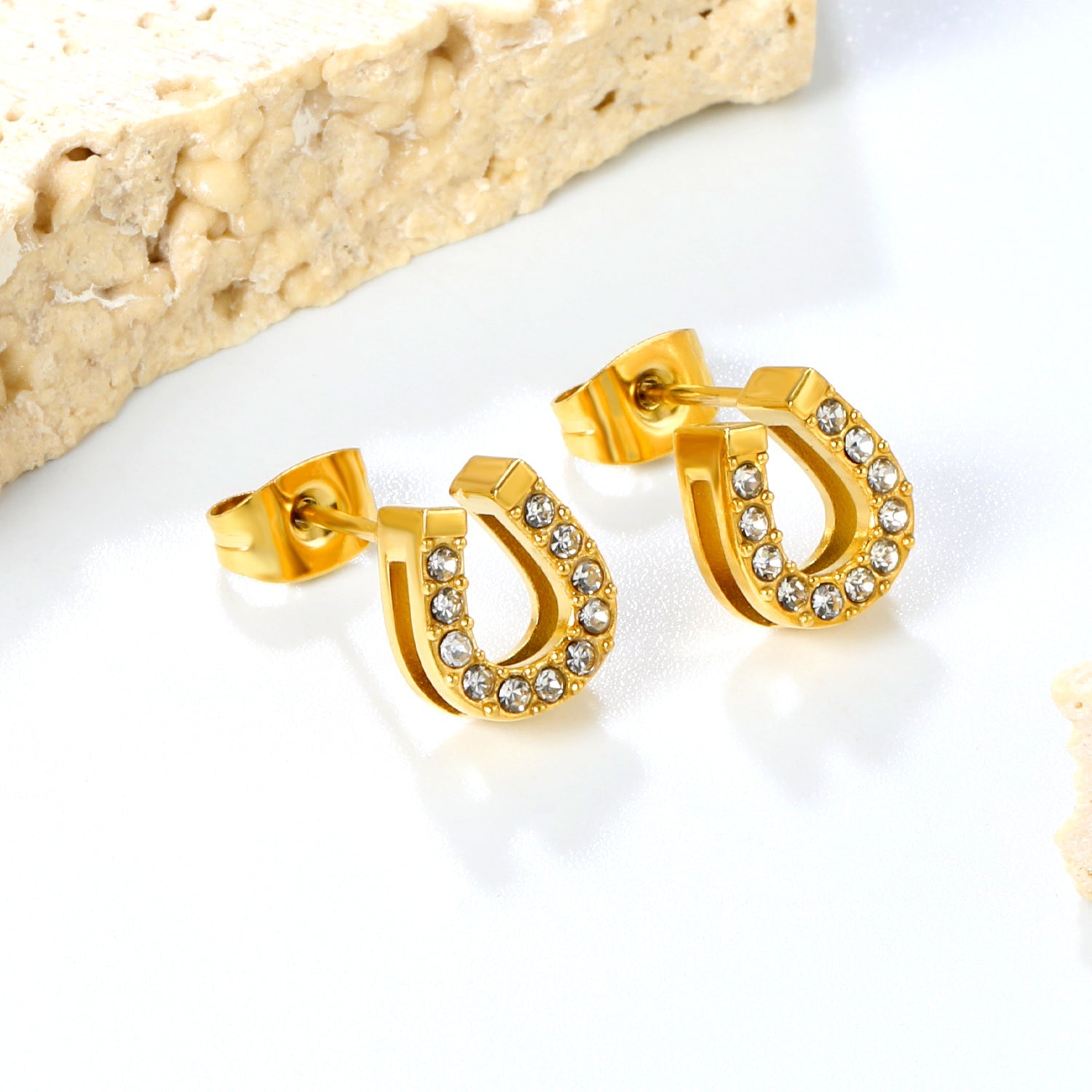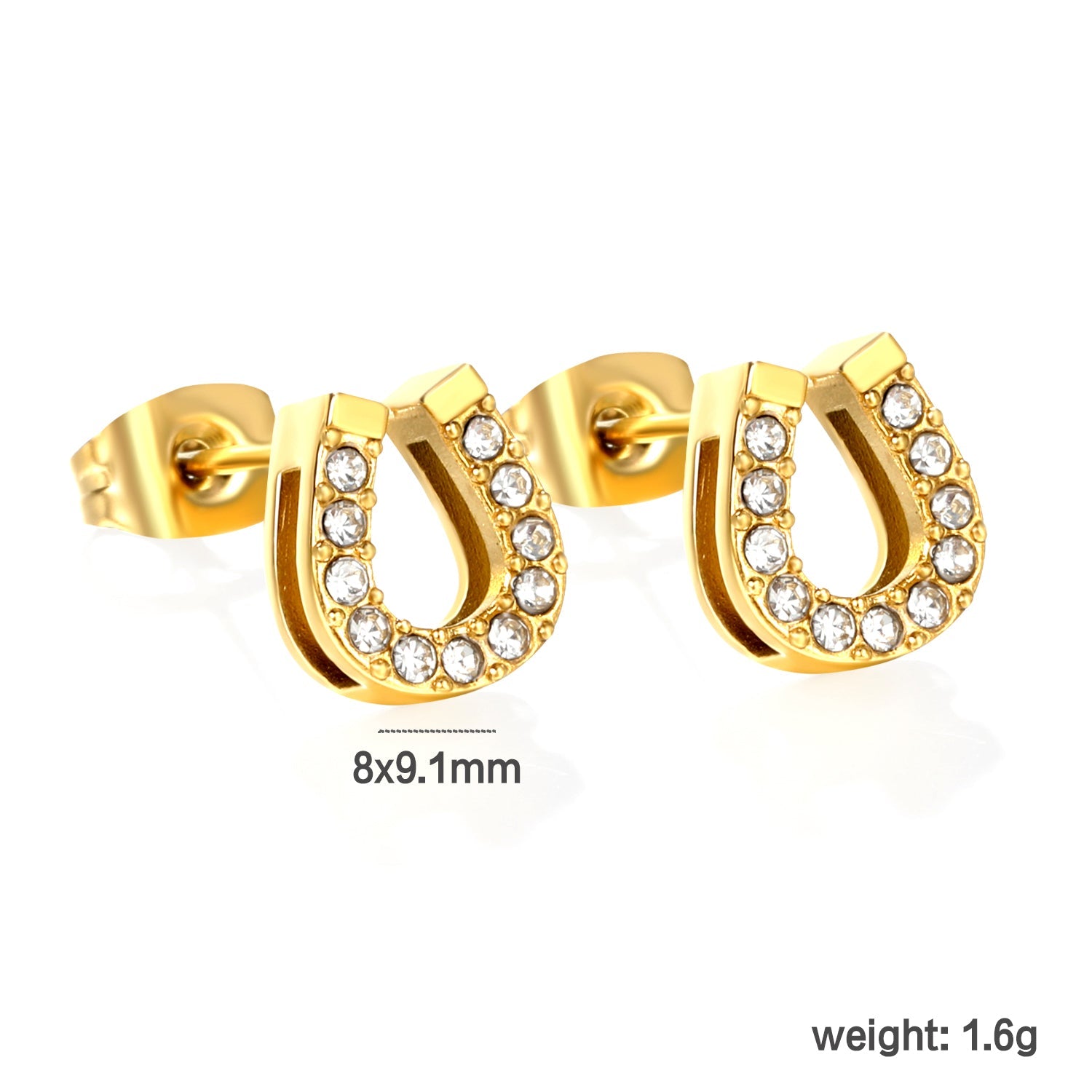 3 pairs of 8*9.1mm U-shaped white diamond stud earrings Gold