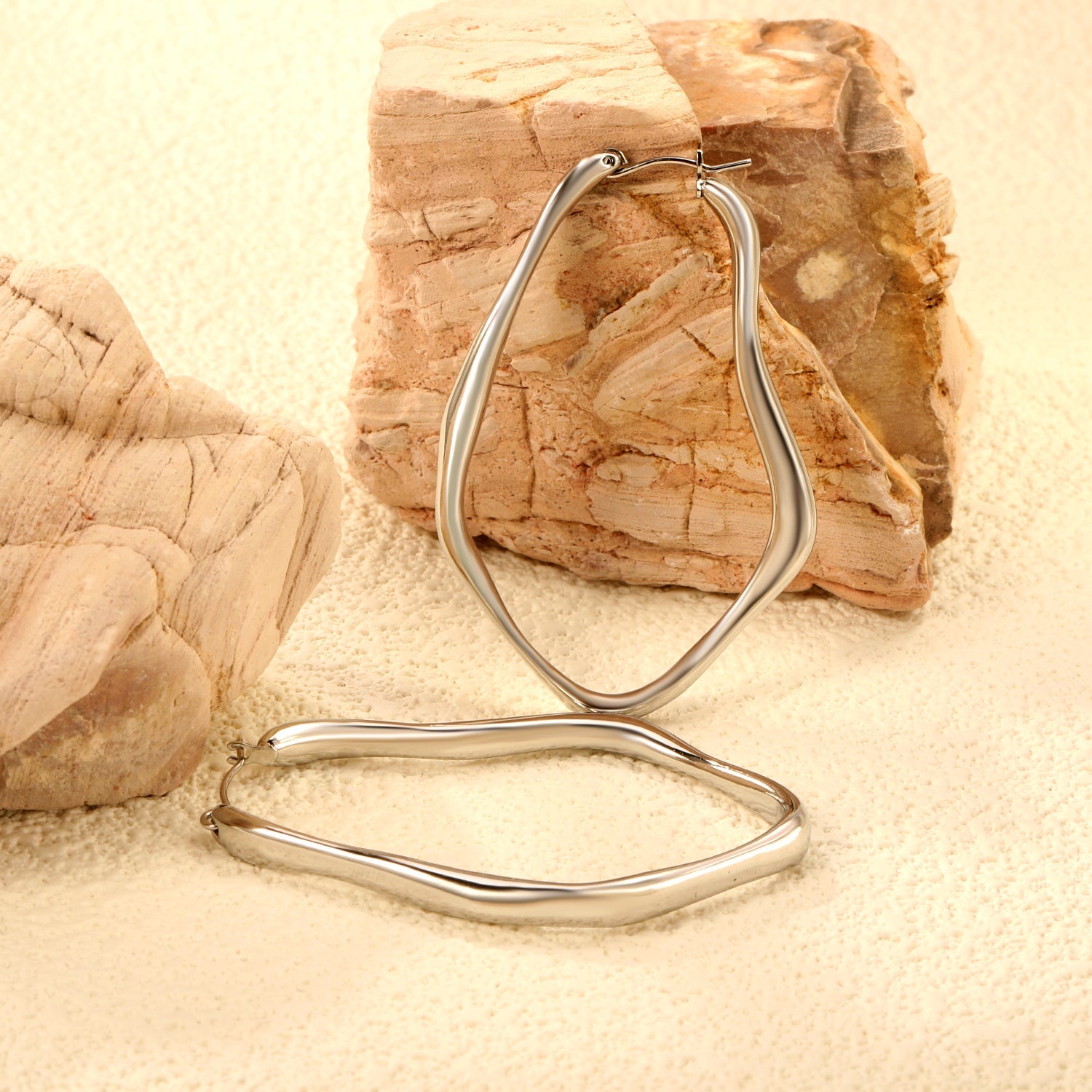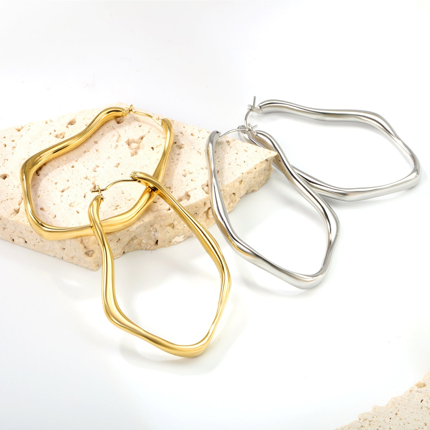 35*51.4mm Shaped Line Ear Buttons Steel/Golden