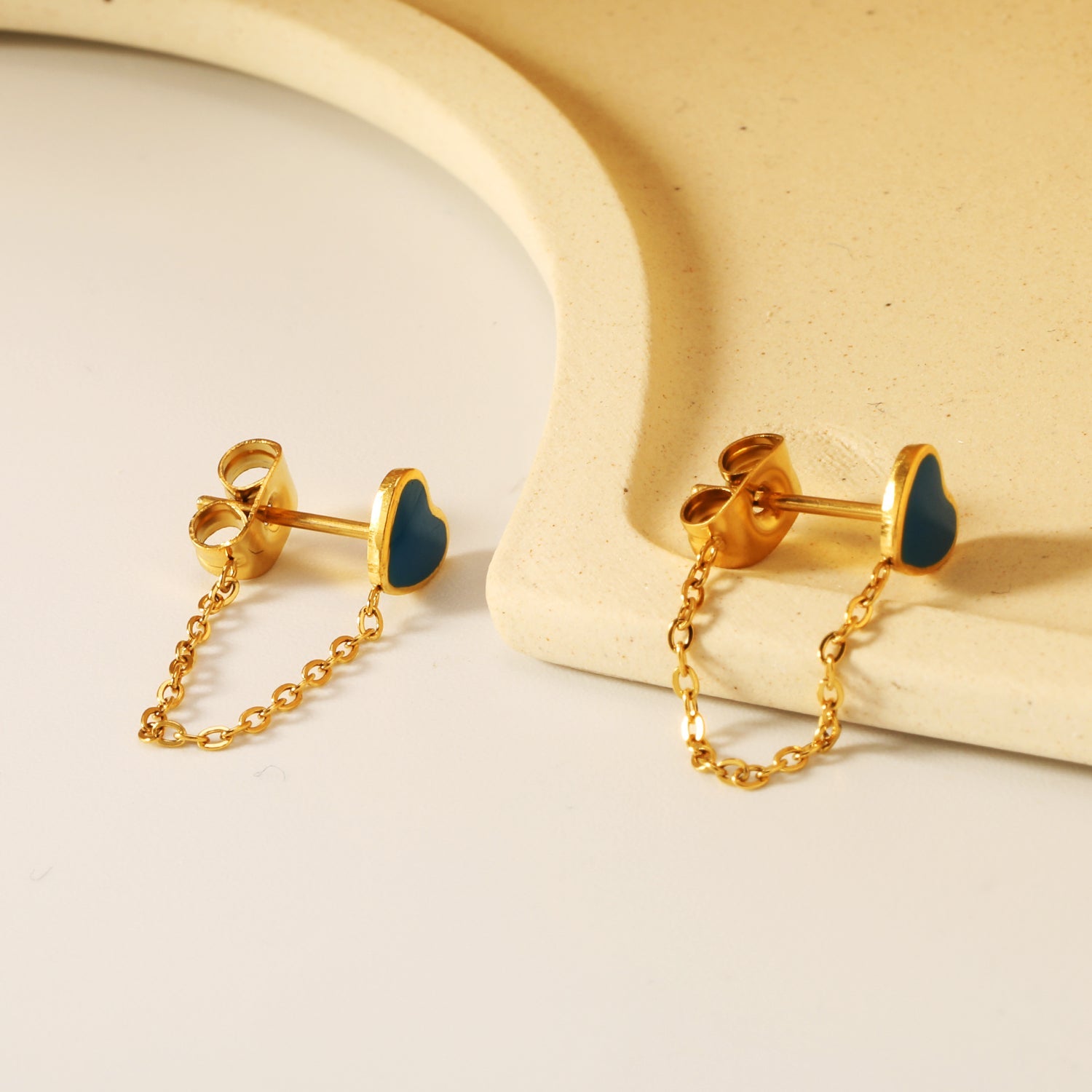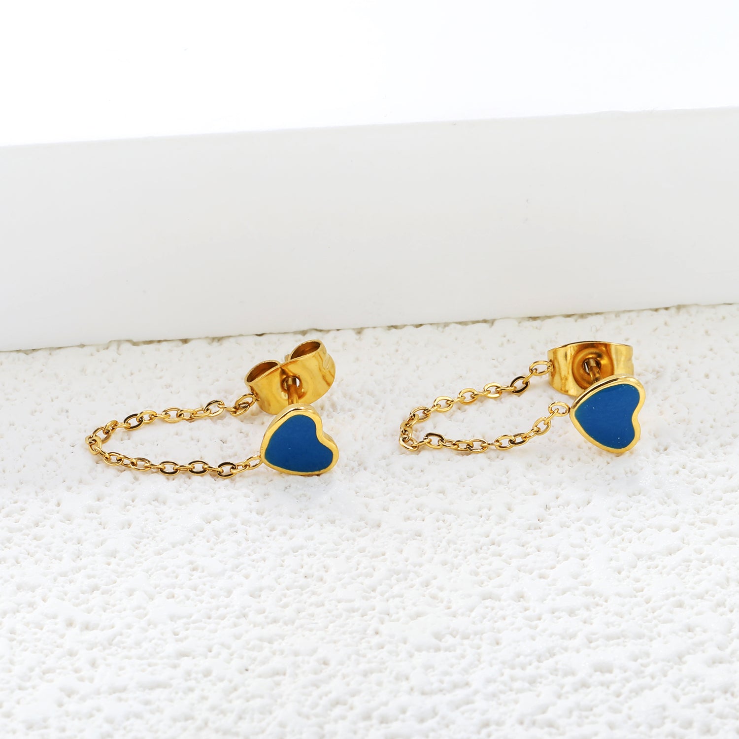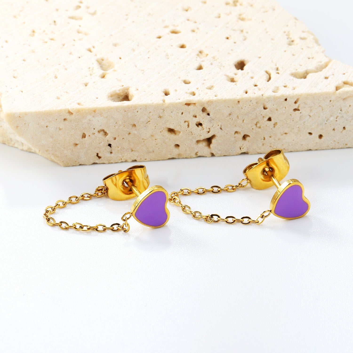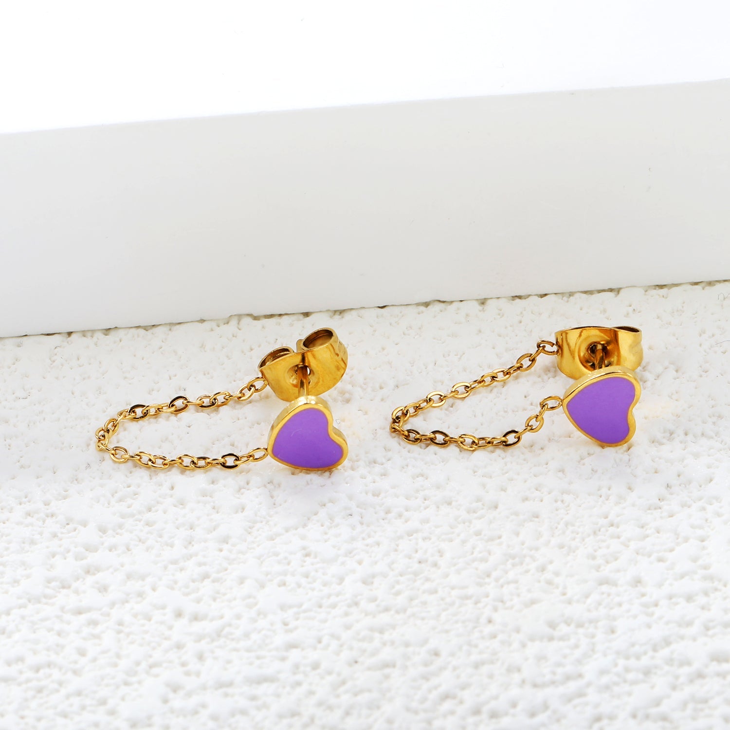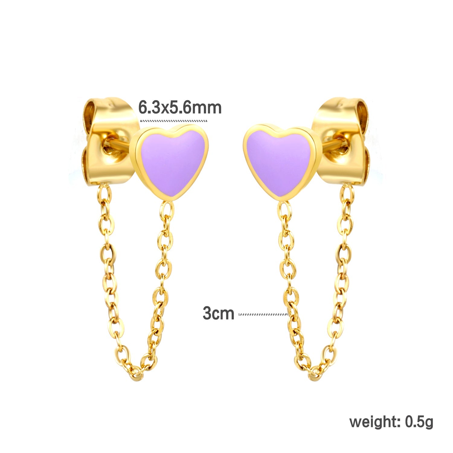Elevate your style with these 5*5.8mm heart-shaped stick earrings. Adorned with white zirconium, purple and dark blue drip oil, and a 30mm cross chain, these gold-colored accessories are perfect for any occasion. Stand out with unique, high-quality jewelry that will make you shine.