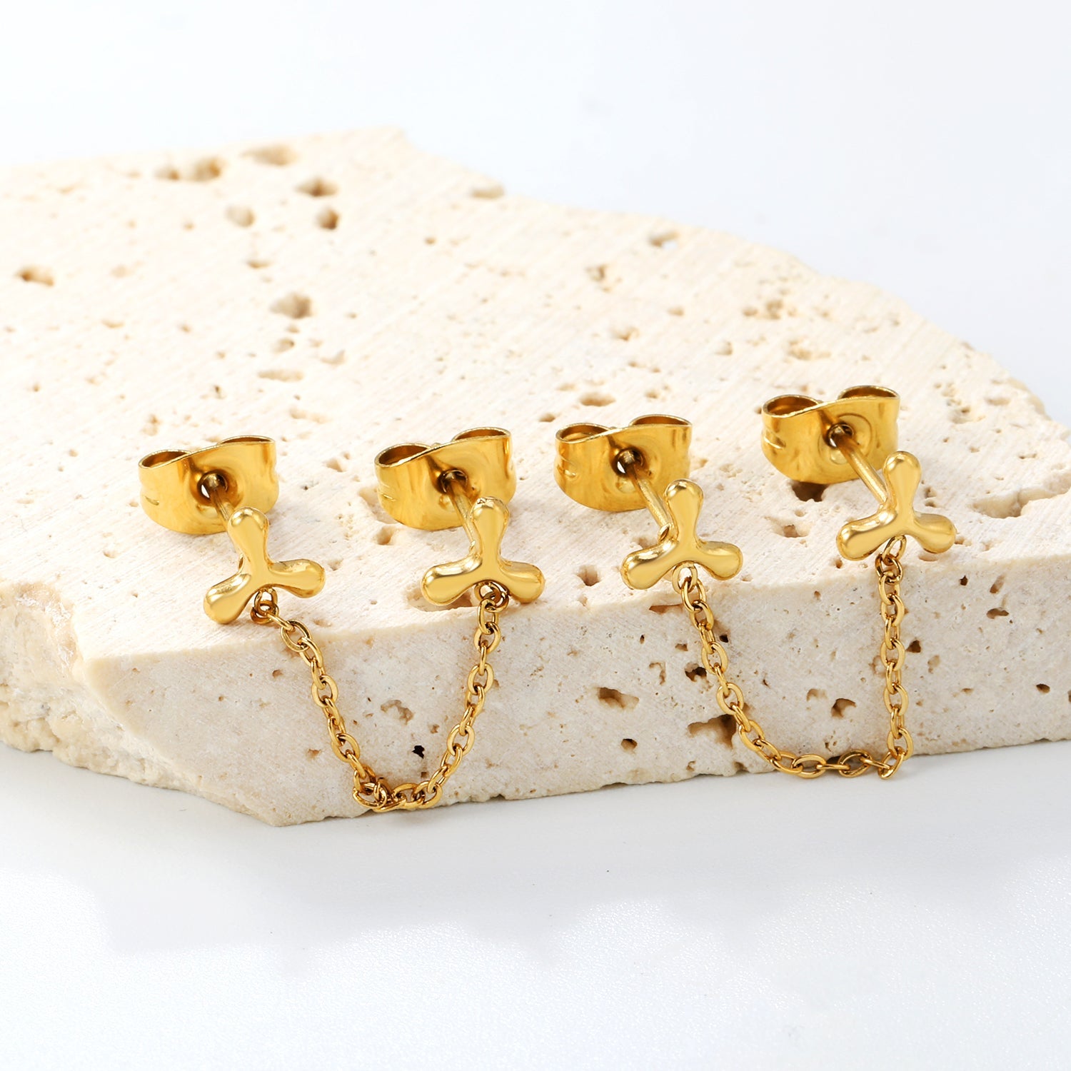5.8mm Triangle Boomerang+03 Cross Chain 30mm Accessories Earrings Golden