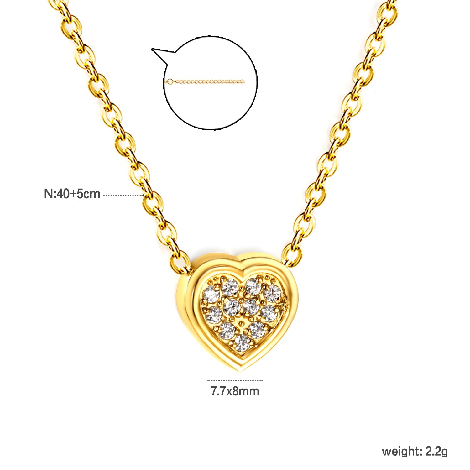 7.7*8mm Convex Heart CNC Zirconia Pendant 0.3 Cross Chain 40+5cm+6mm Round Necklace Golden