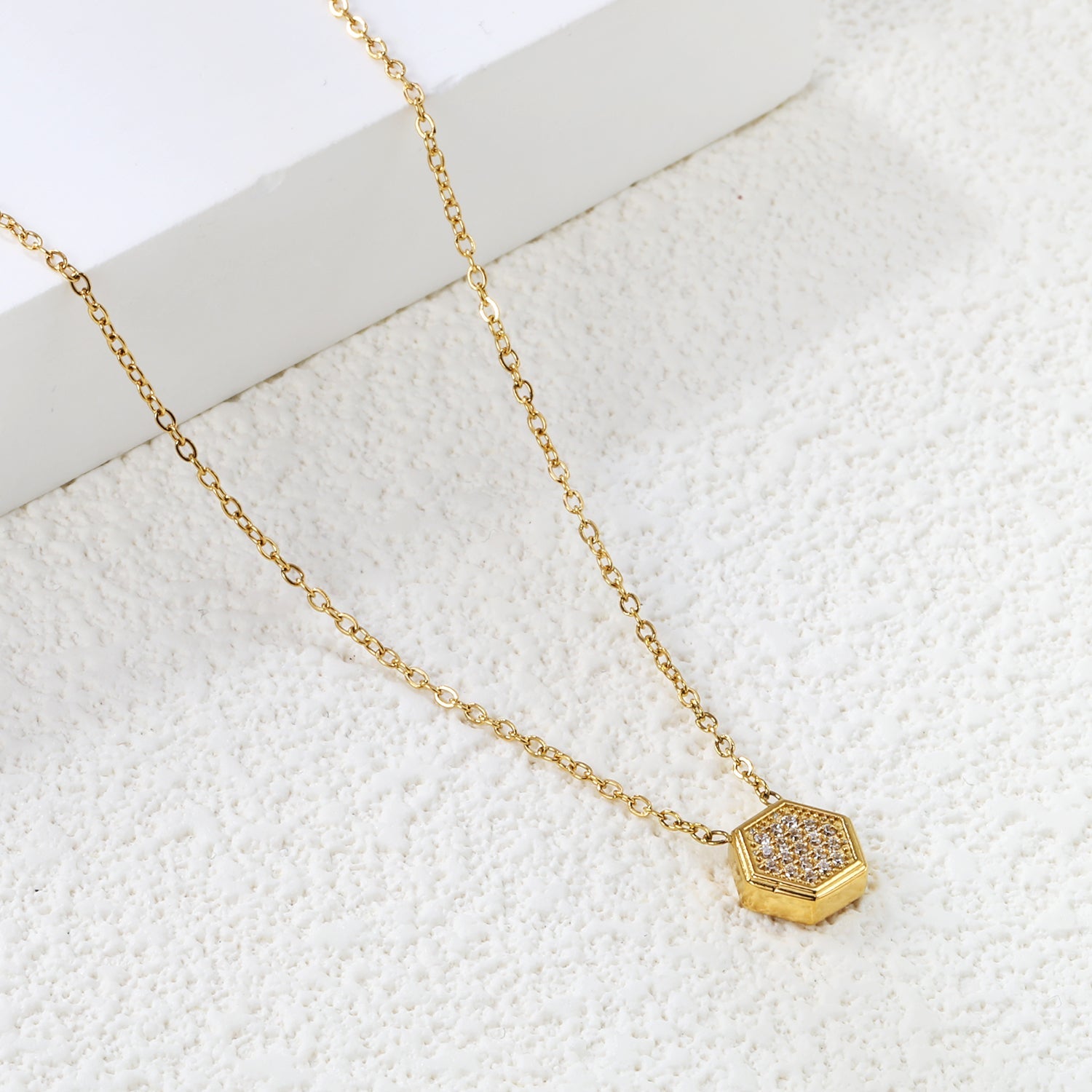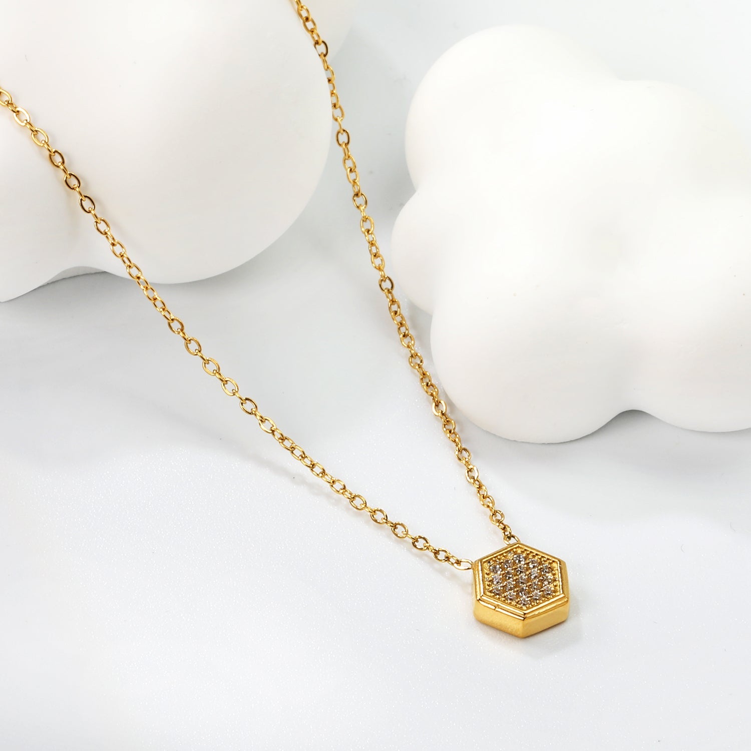 7.8*8.6mm Convex Hexagonal CNC White Zirconium Pendant 0.3 Cross Chain 40+5cm+6mm Round Necklace Golden