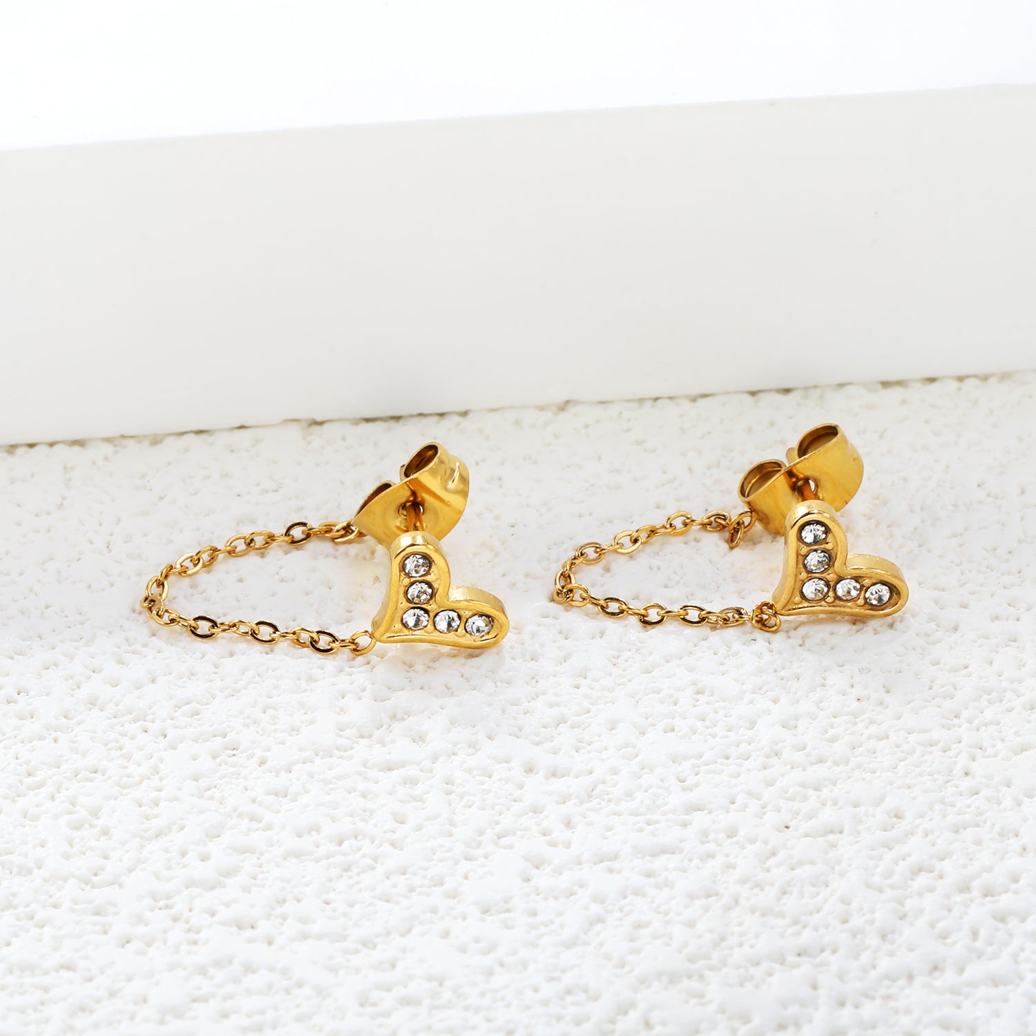 Express your love with these heart-shaped earrings adorned with sparkling white zirconium. Gold coloring adds elegance, and the cross chain accessory adds a touch of faith. At 8.2*6mm, they are a subtle yet striking addition to any outfit. Made with high-quality materials for a lasting and beautiful piece.