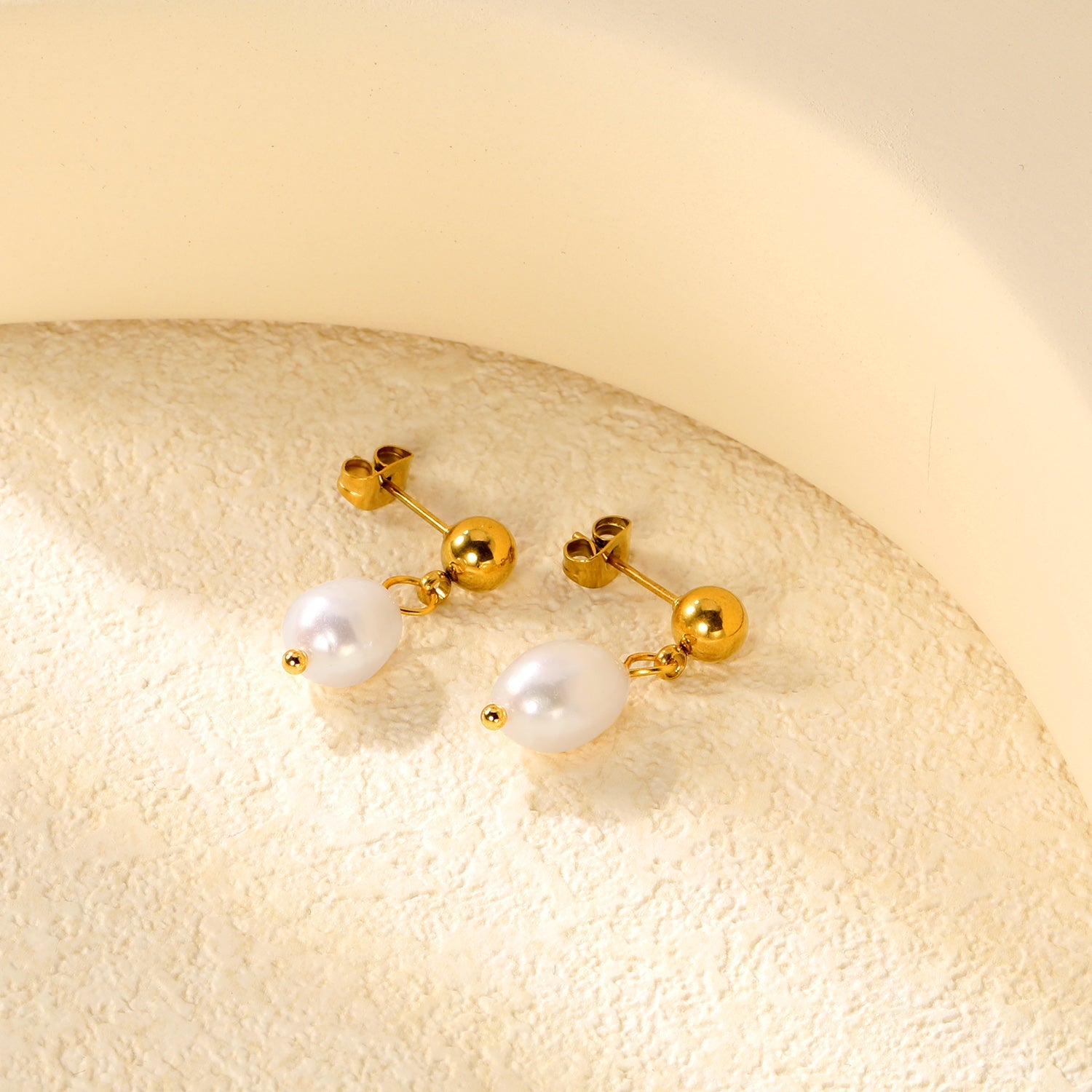 Elegant freshwater pearl pendant measuring 8.4*12mm paired with complementary 6mm steel earrings in luxurious gold color. This sophisticated jewelry set combines the timeless beauty of natural pearls with durable steel components, offering versatility for both formal occasions and everyday elegance.