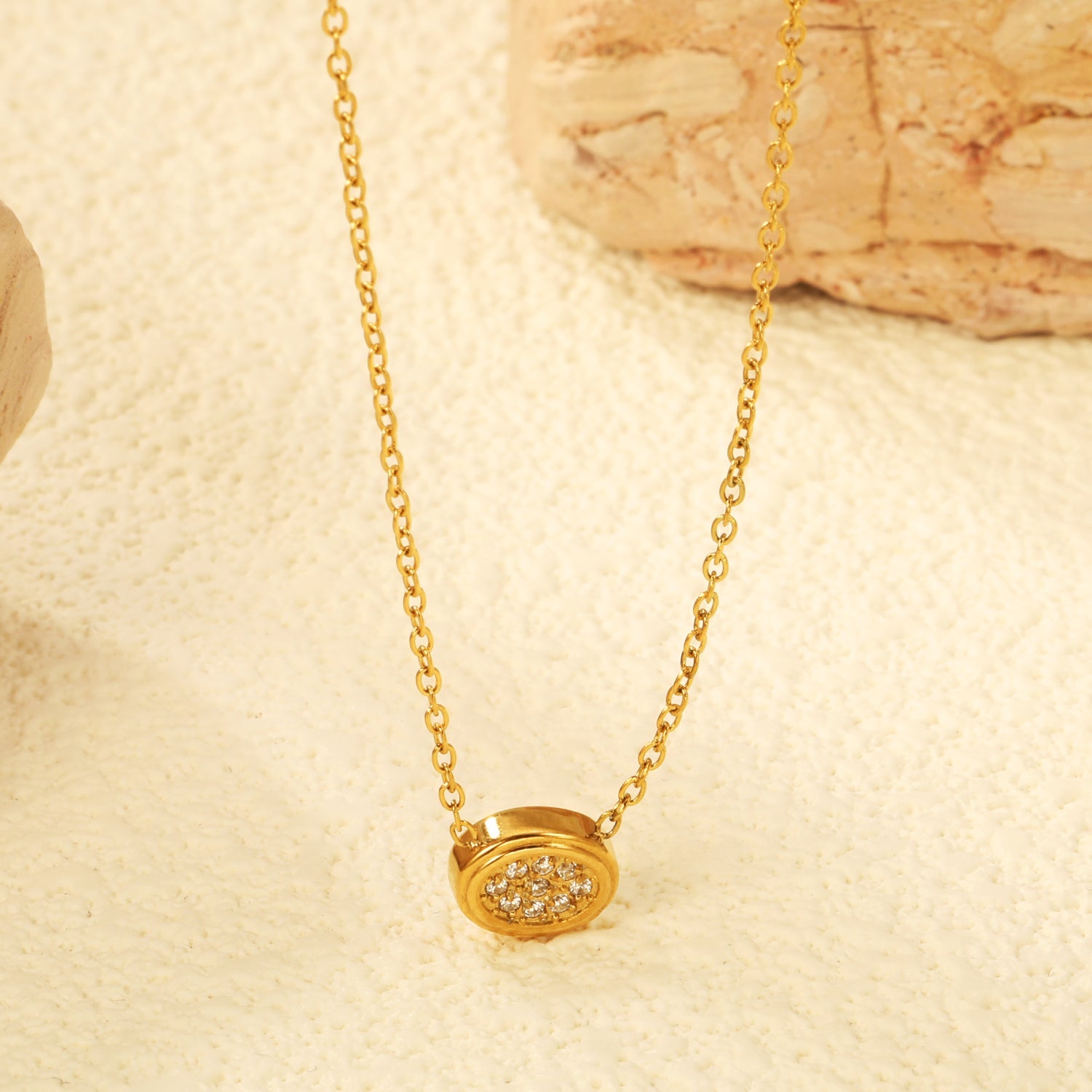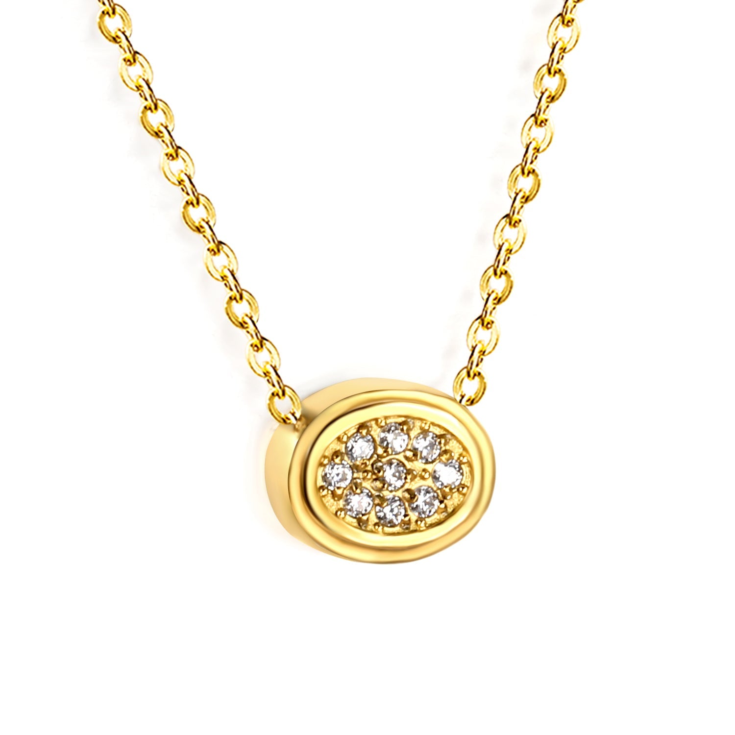 8.6*6.8mm Convex Oval CNC Zirconia Pendant 0.3 Cross Chain 40+5cm+6mm Round Necklace Gold color