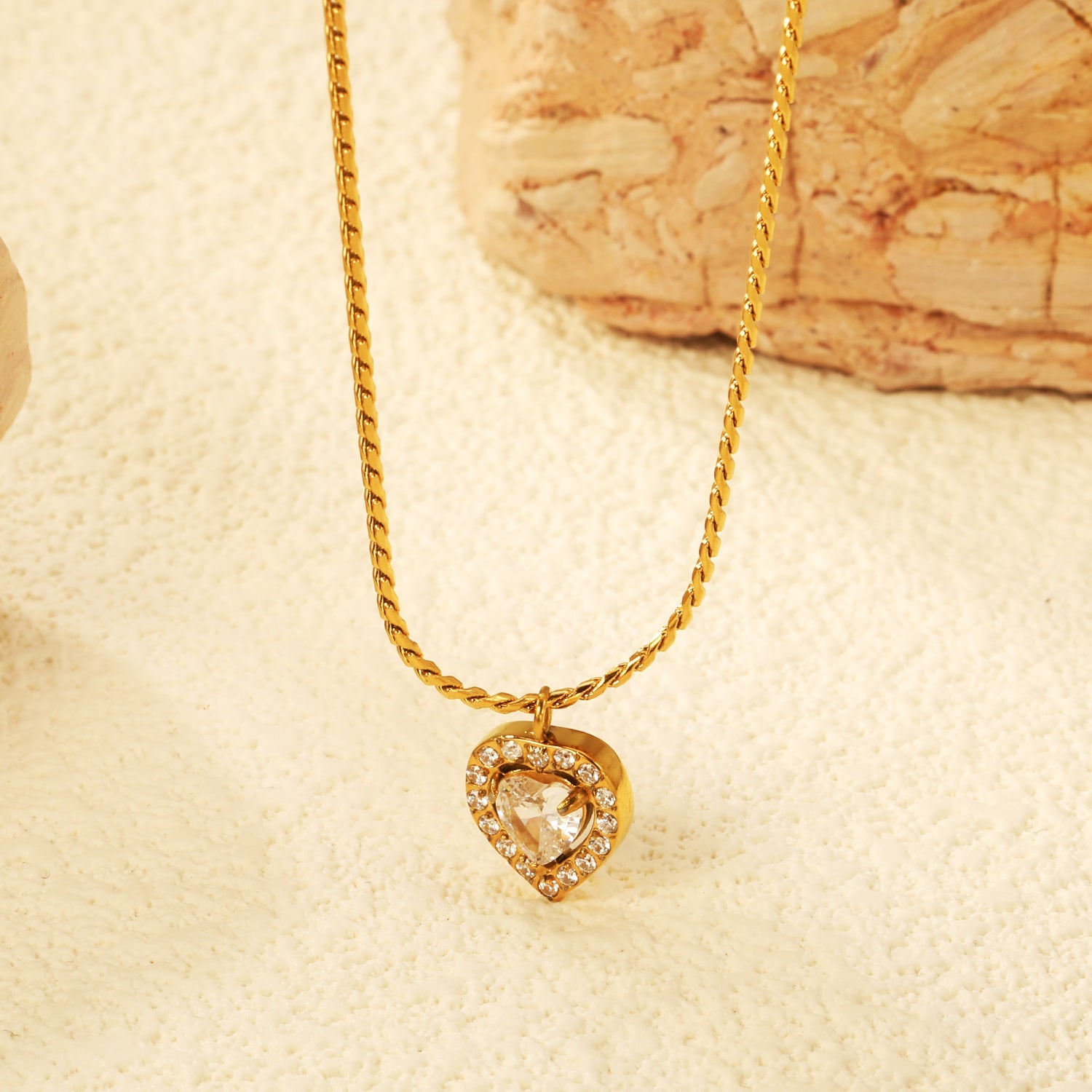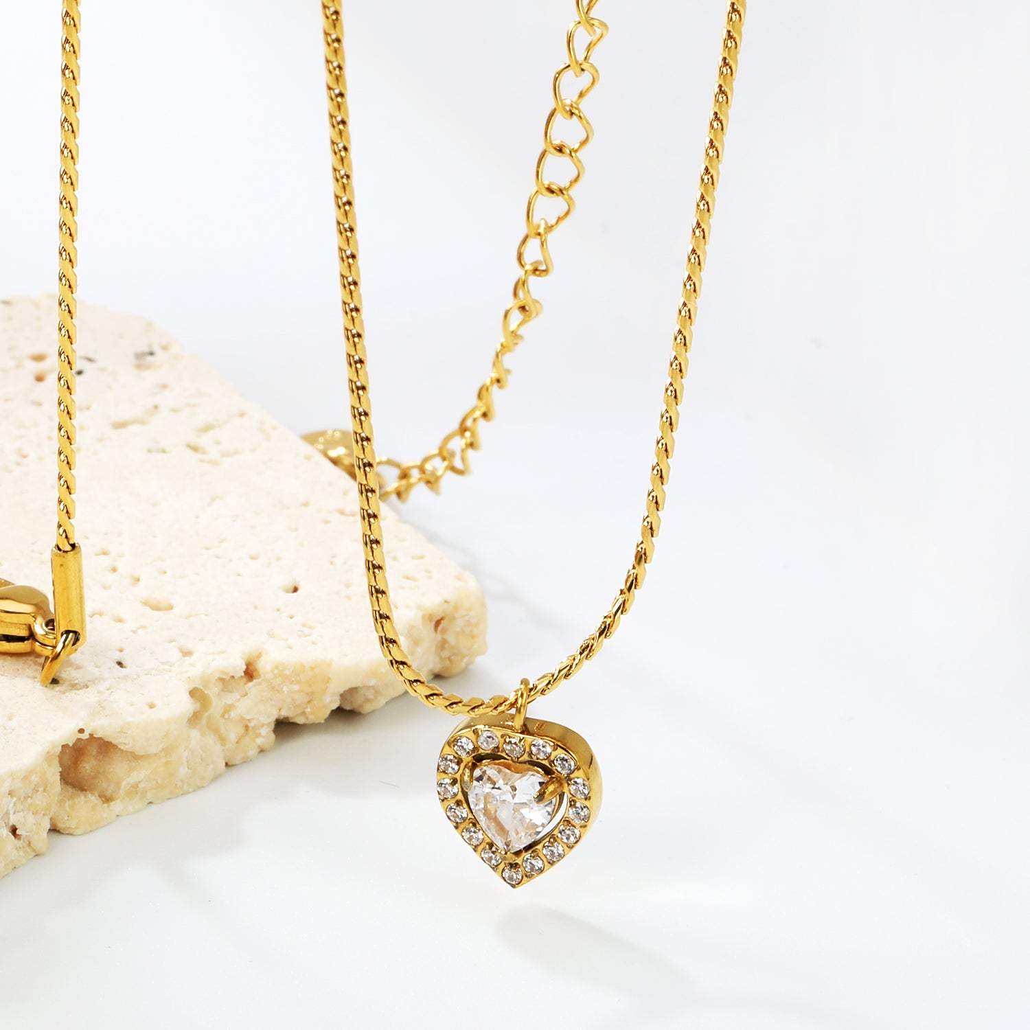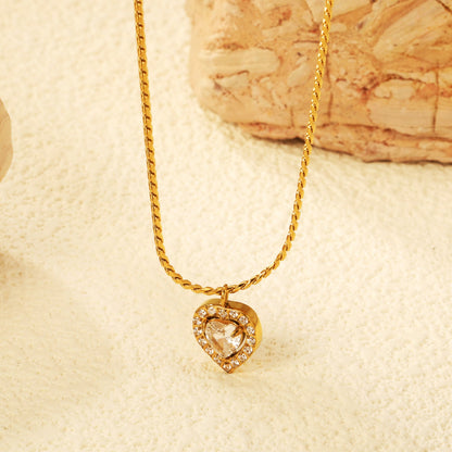9.4*10mm Heart CNC White Zirconium Circle Pendant 40+5cm+6mm Necklace Golden