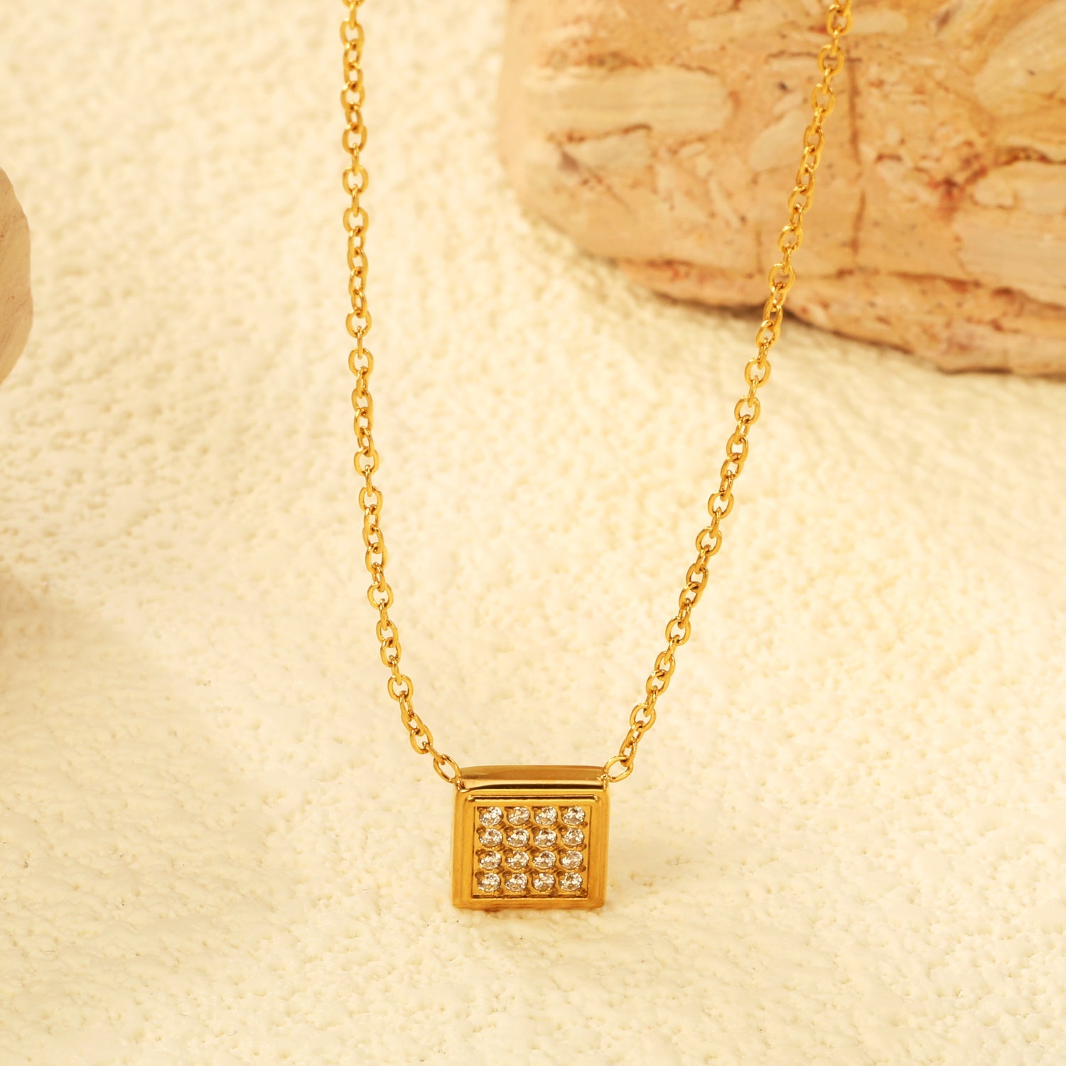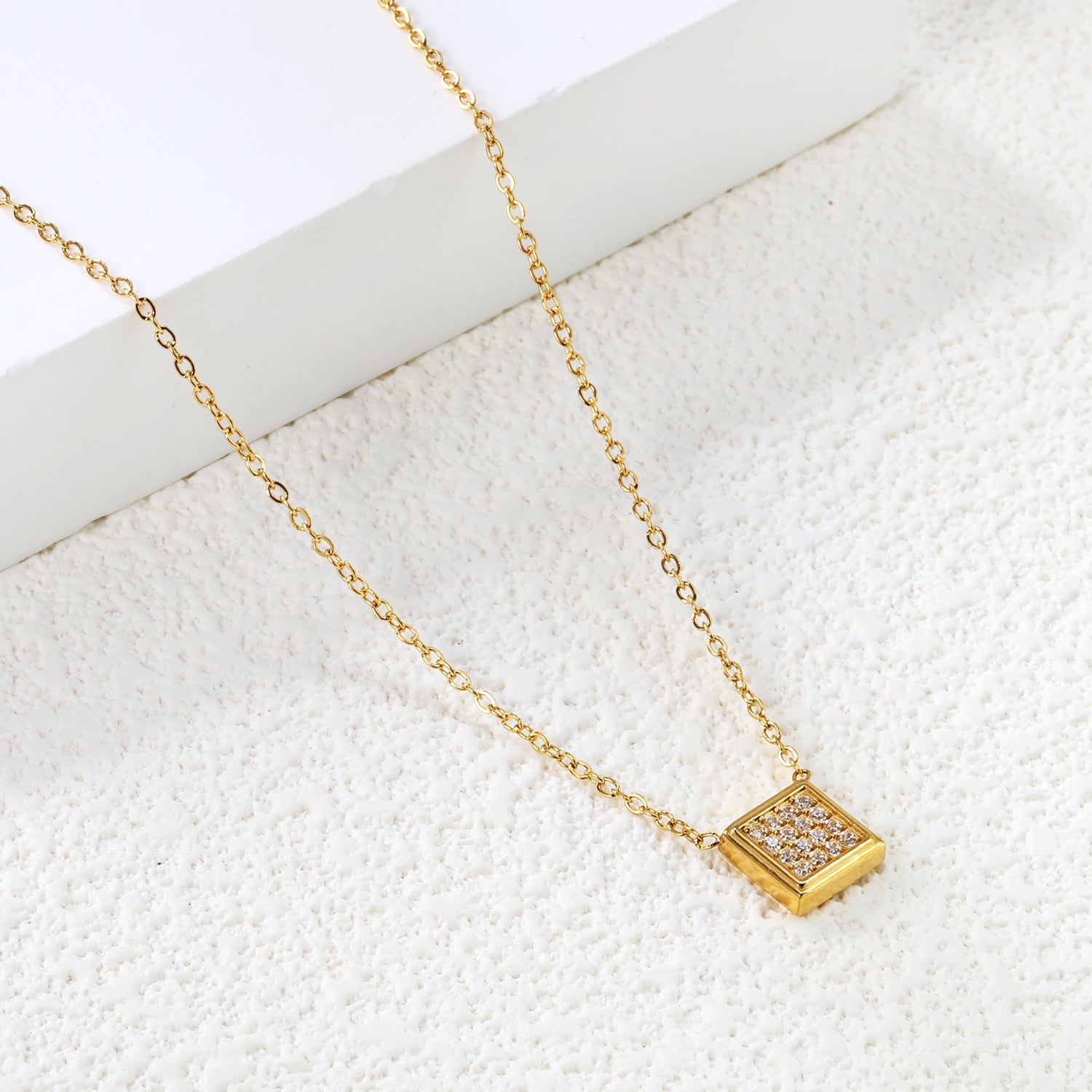 CNC White Zirconium Pendant 0.3Cross Chain 40+5cm+6mm Round Necklace Golden