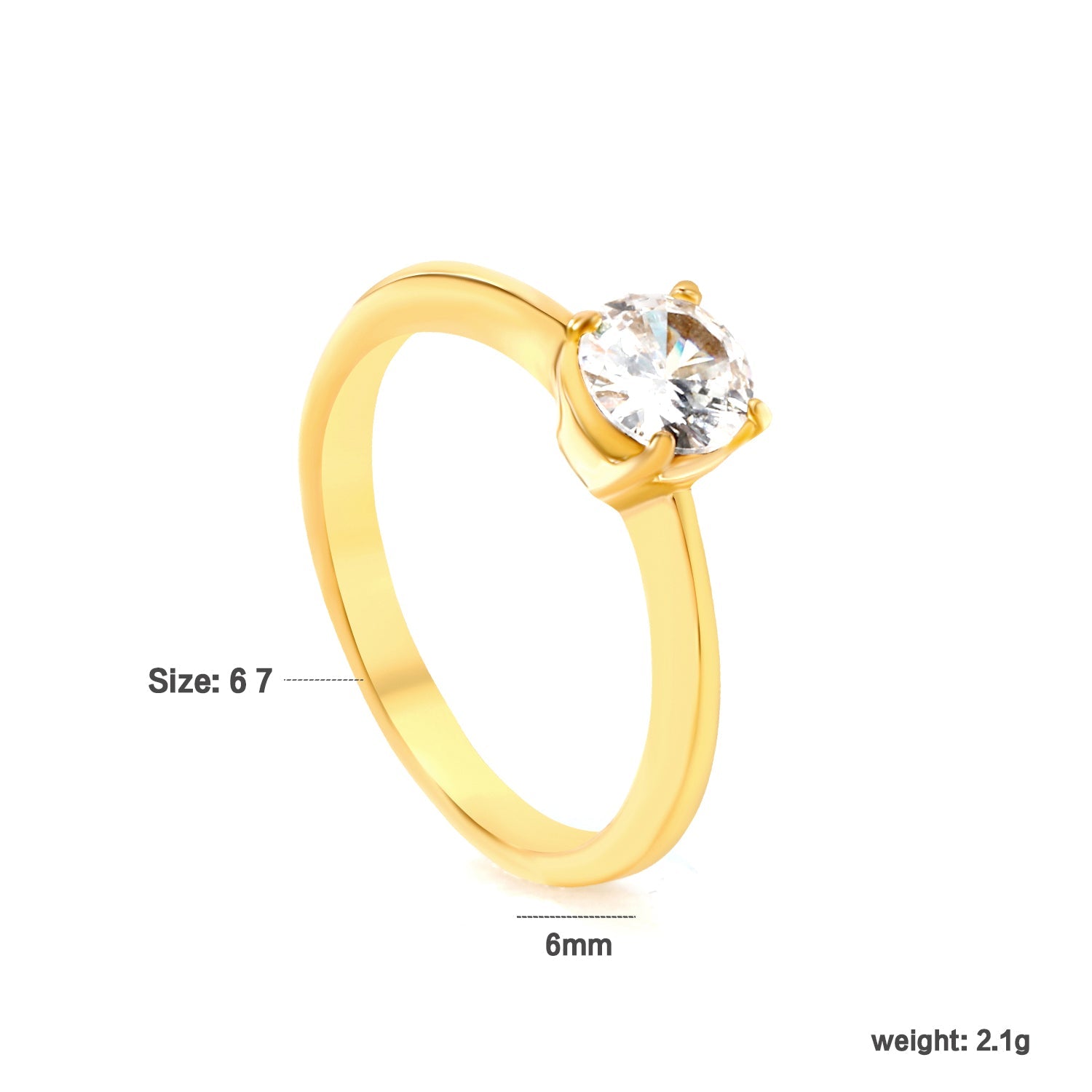 H6mm Round Minimalist White Zirconia Ring Gold/steel color