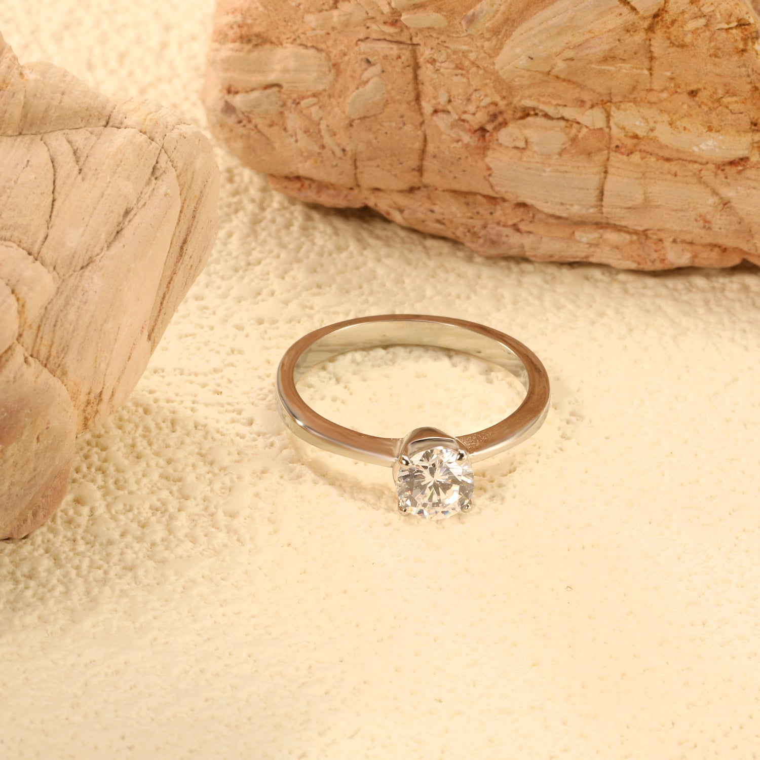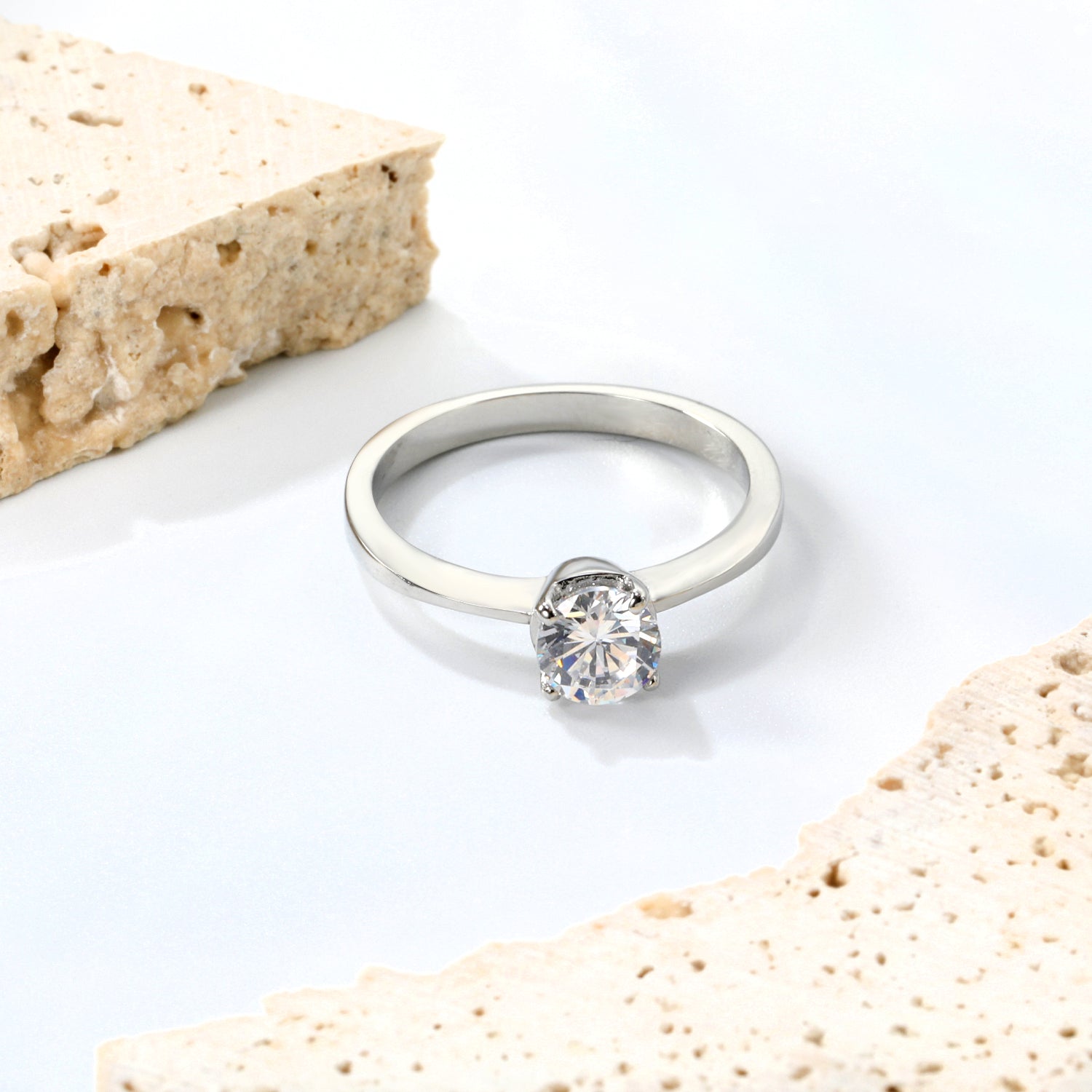 This minimalist ring features a round 6mm white zirconia stone set in your choice of gold or steel color. With a sleek and modern design, this ring adds a touch of elegance to any outfit. Perfect for those who appreciate understated style.
