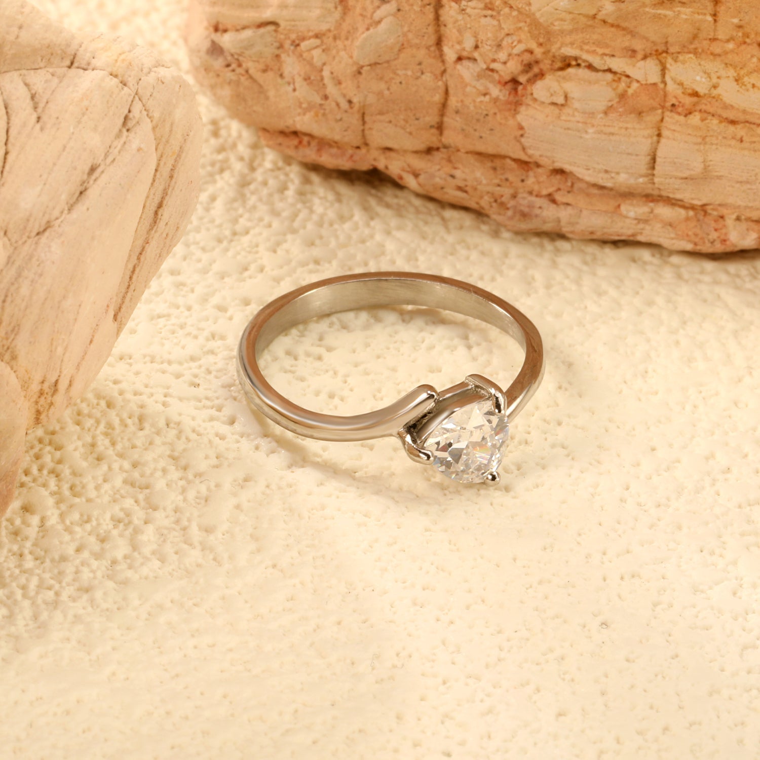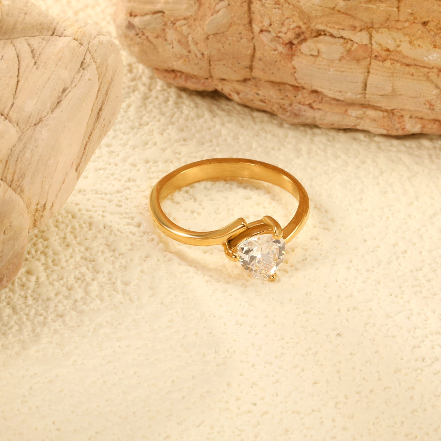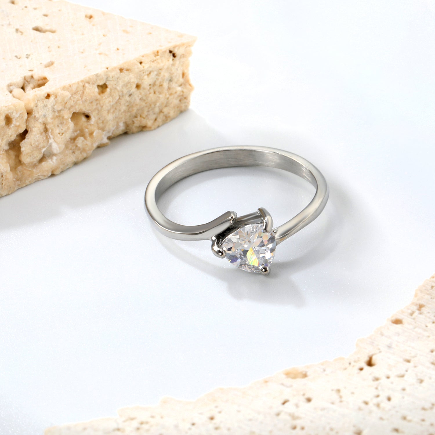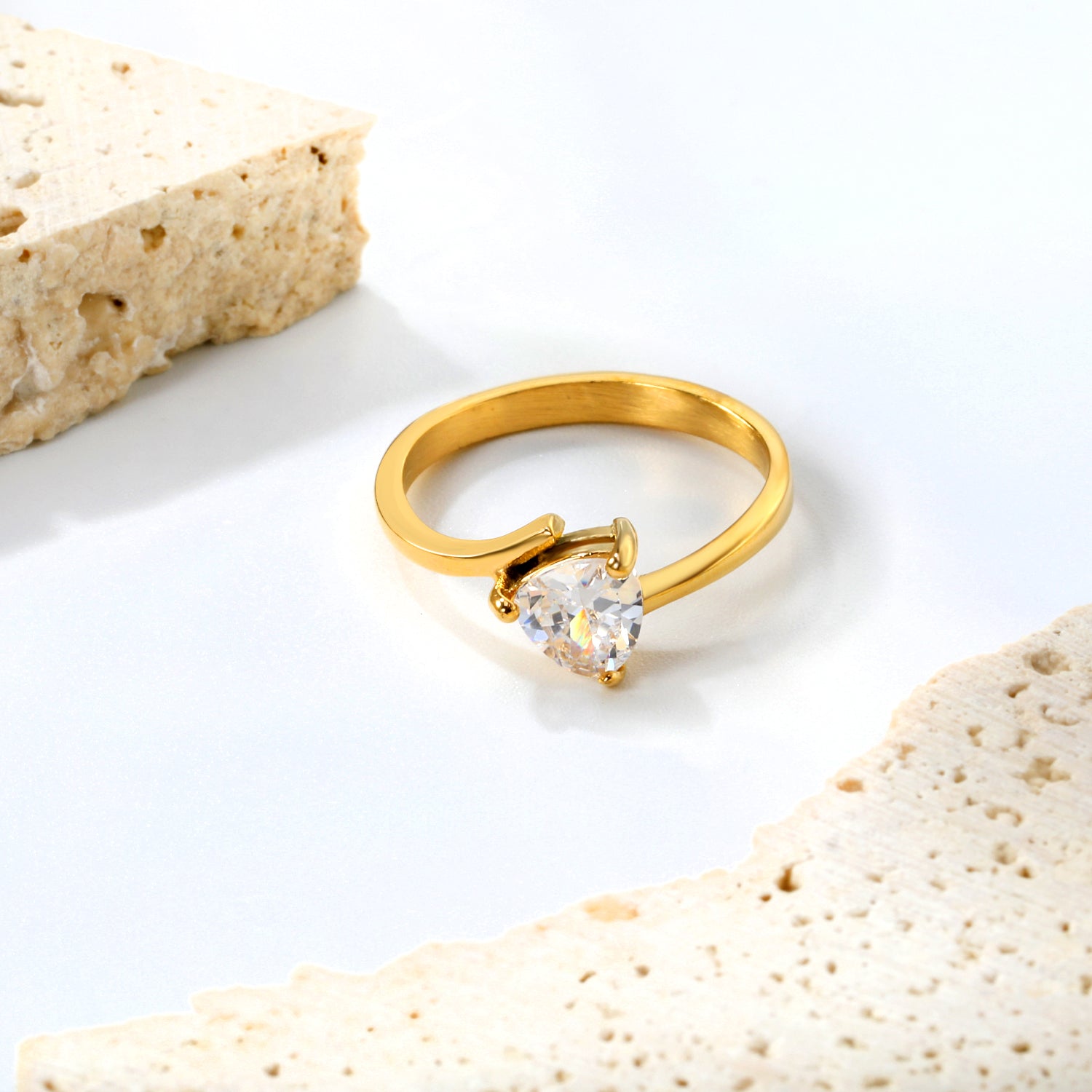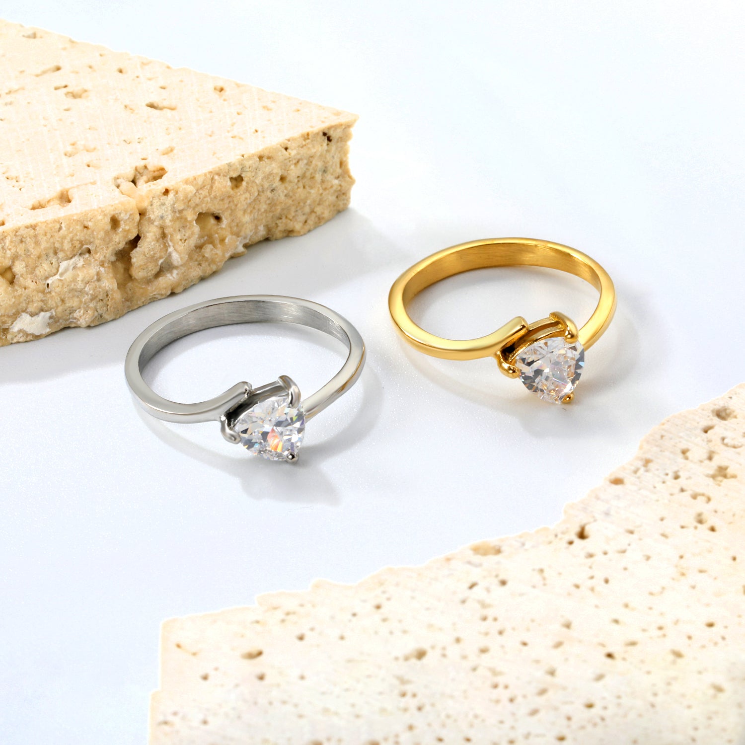 Height 7.3mm Triangular white diamond open-end ring Zirconium steel color/golden