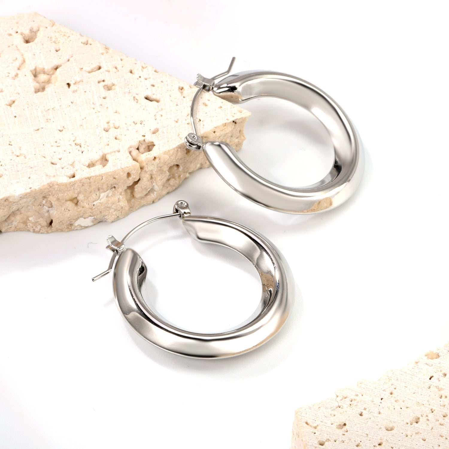 Hollow opening round corner earrings 6*32mm thick steel/golden