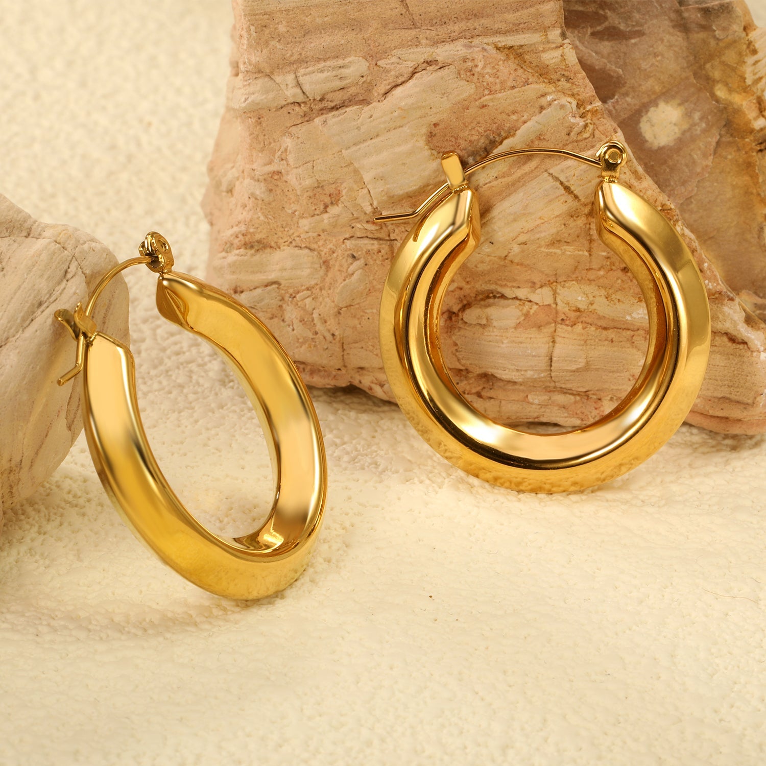 Upgrade your accessory collection with our sleek and modern Hollow opening round corner earrings. Crafted with 6*32mm thick steel and adorned with a stunning golden finish, these earrings add a touch of elegance to any outfit. The unique hollow design offers a lightweight, comfortable fit for all-day wear.