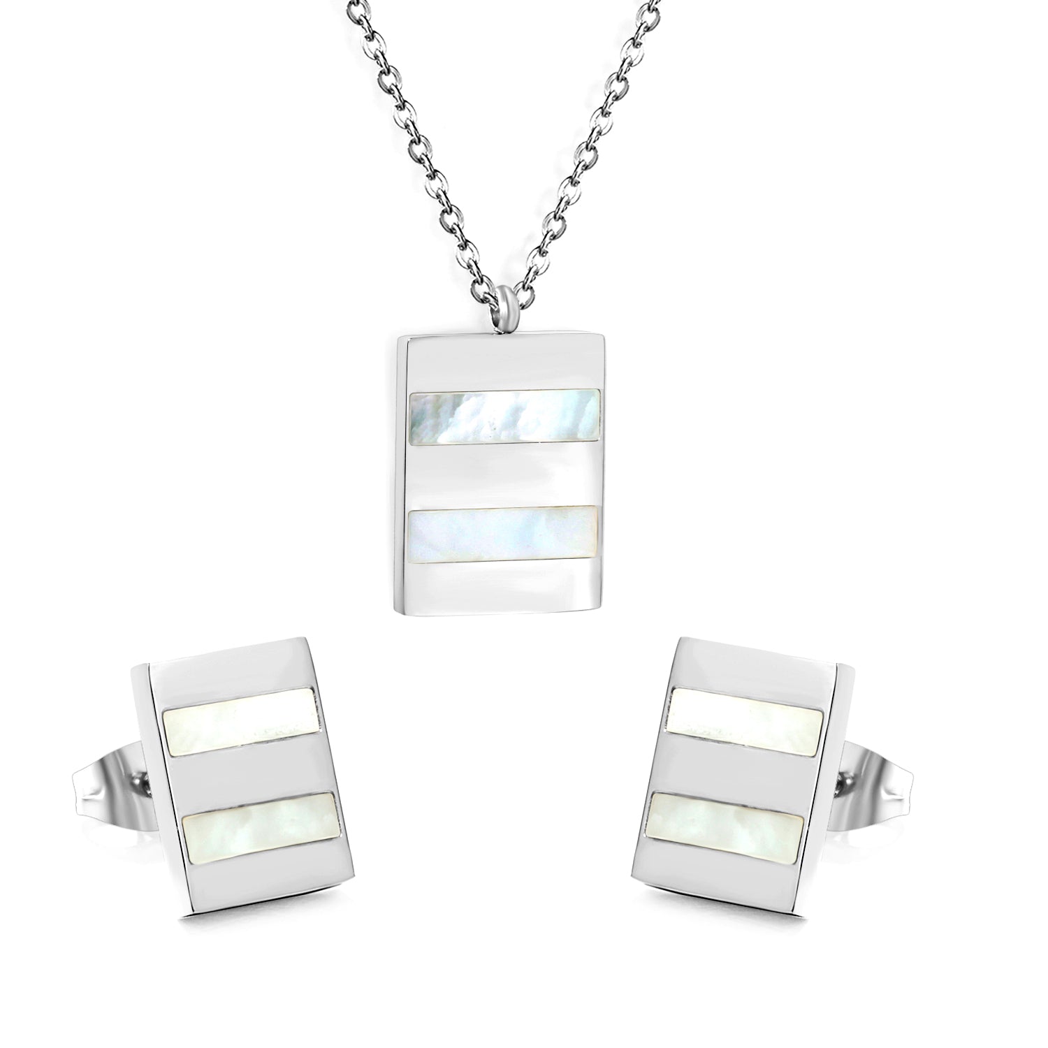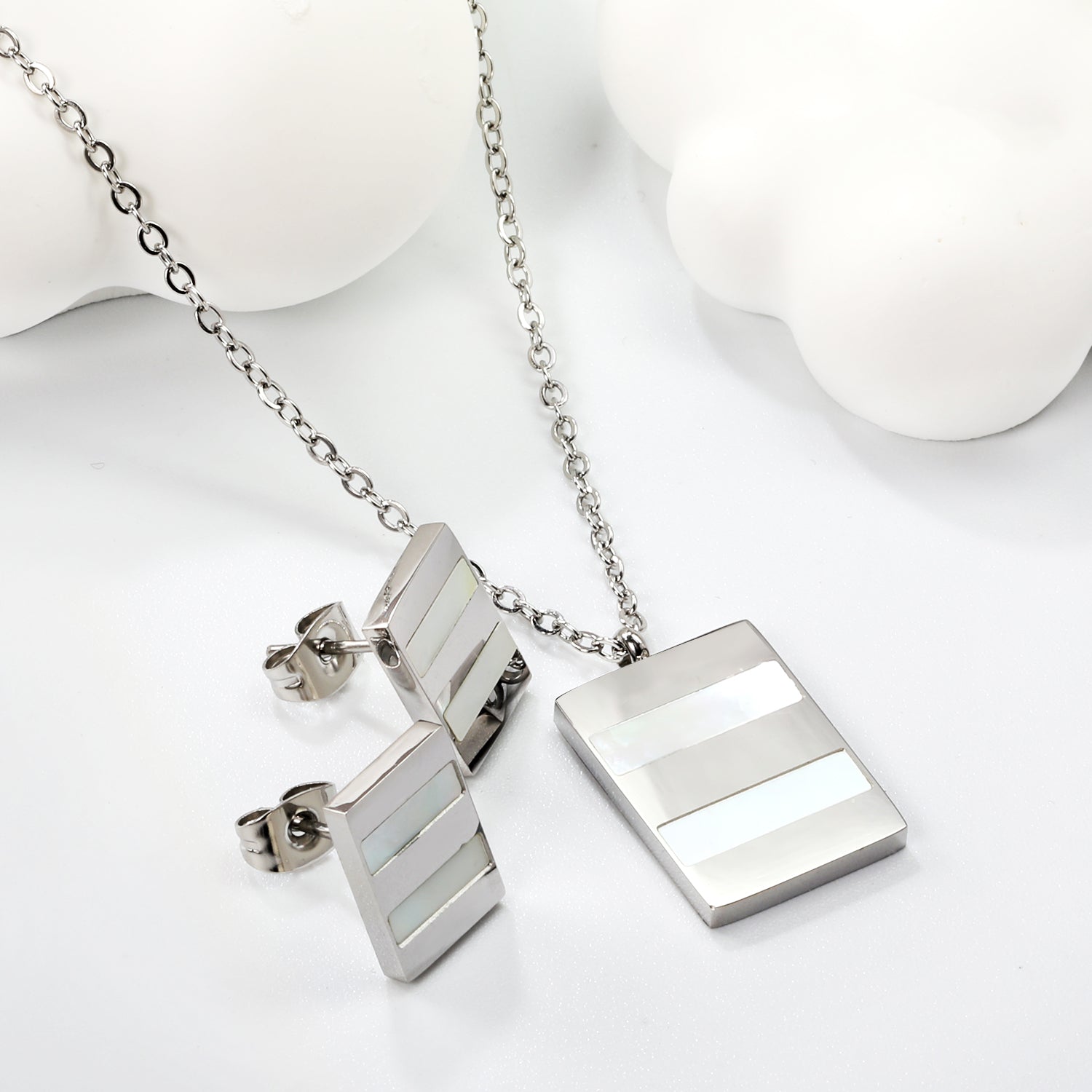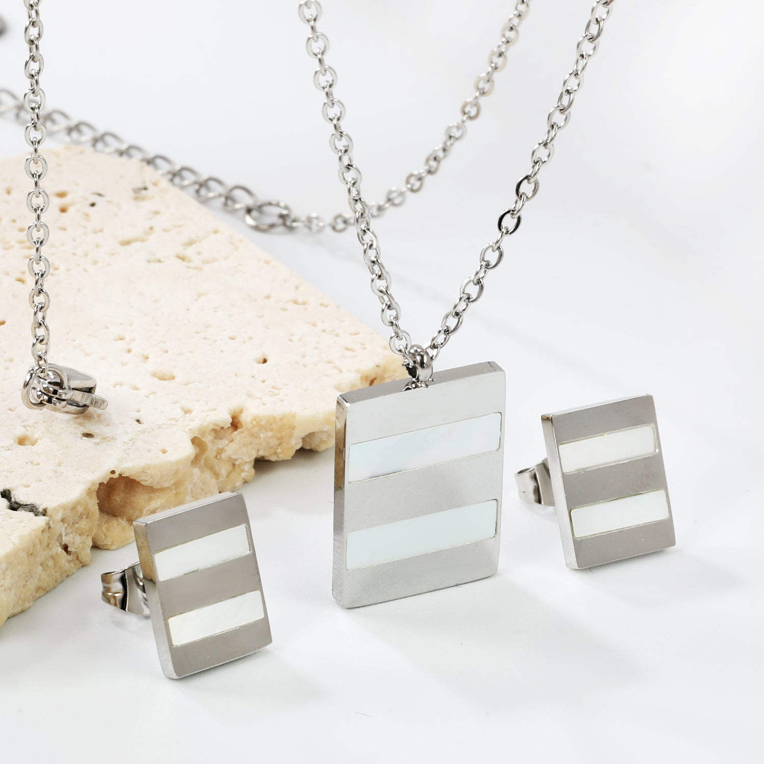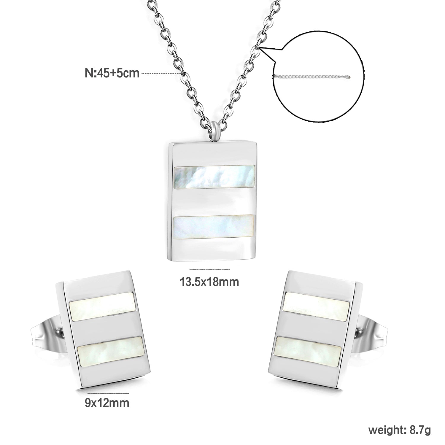 Rectangle Sticky White Shell Set Steel/Gold Earrings:9*12mm Pendant:13.5*18mm 04 Cross 45+5cm+6mm Round Plaque