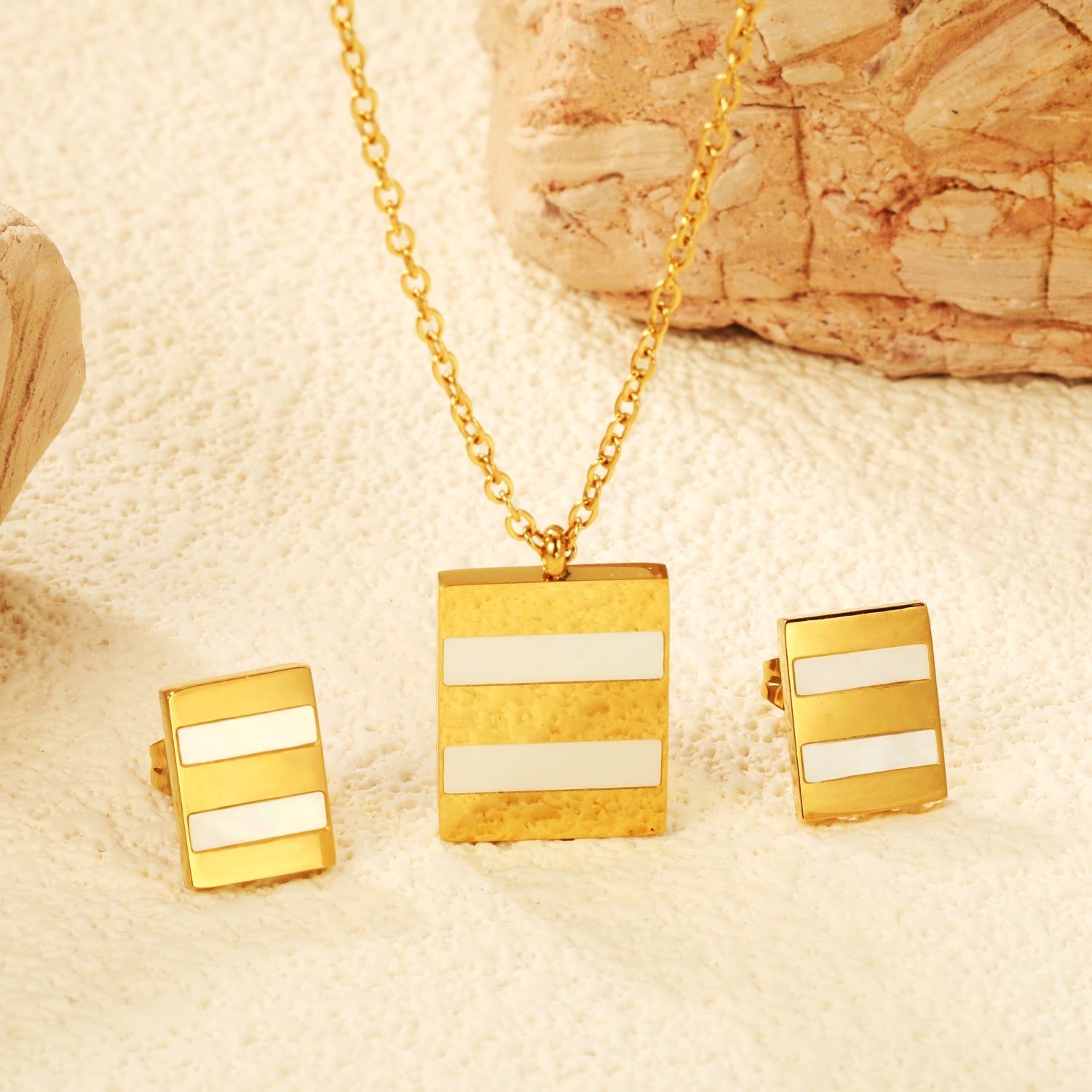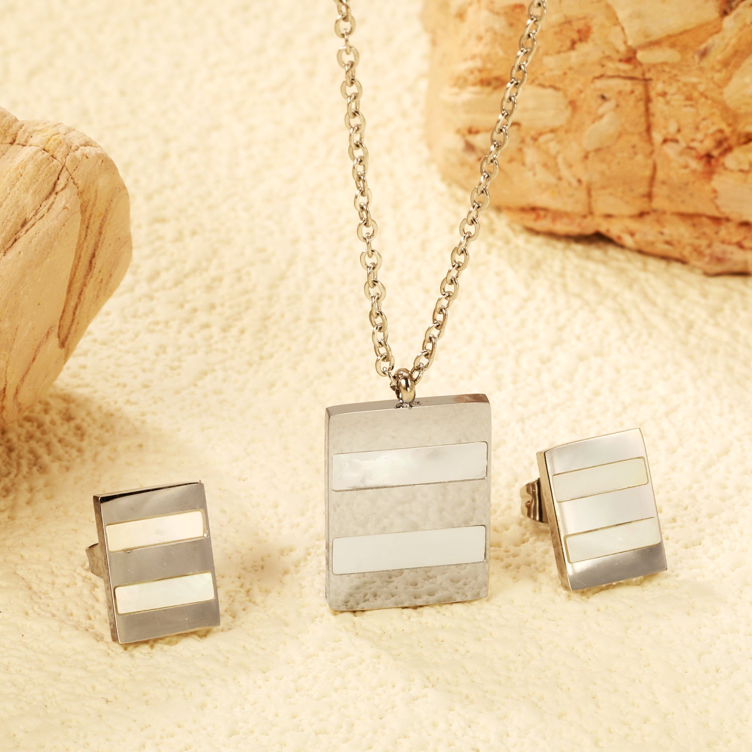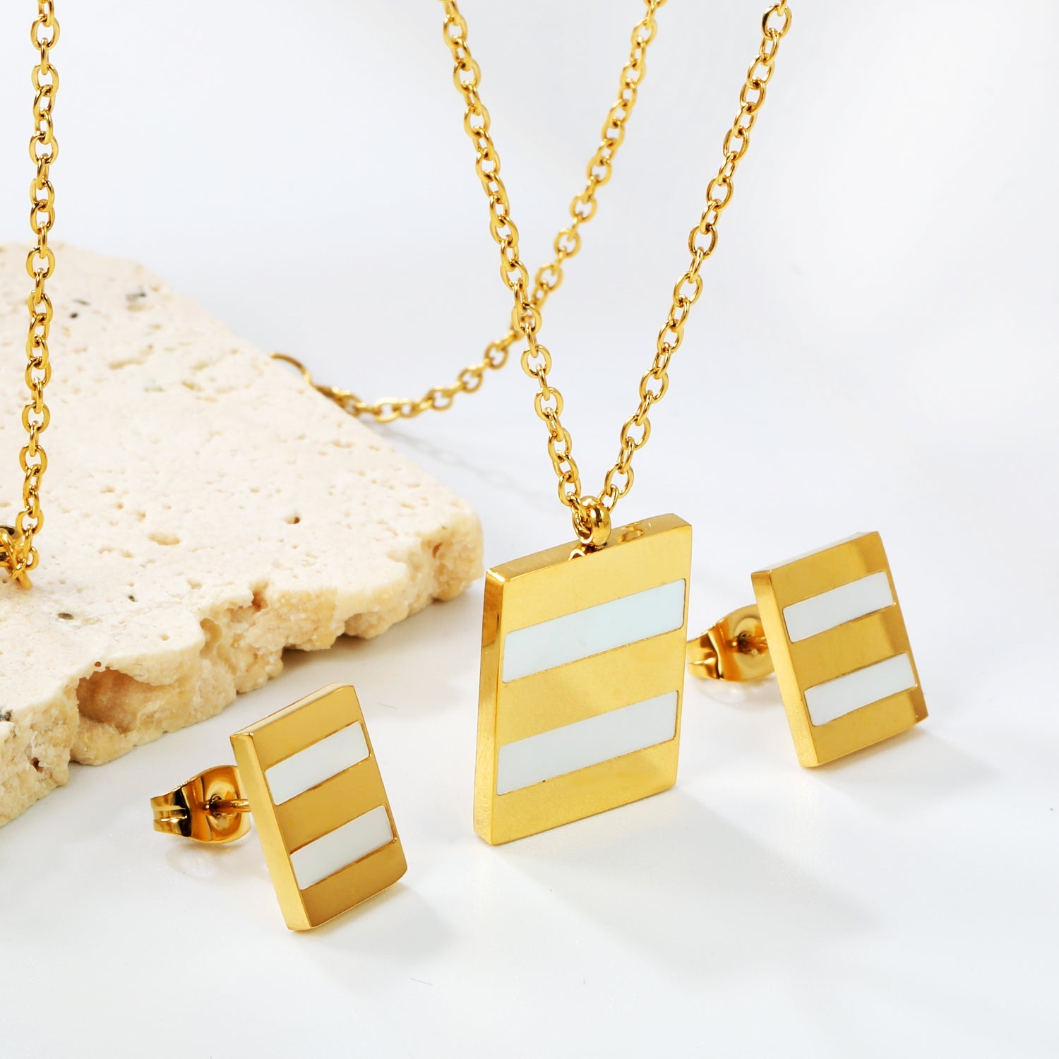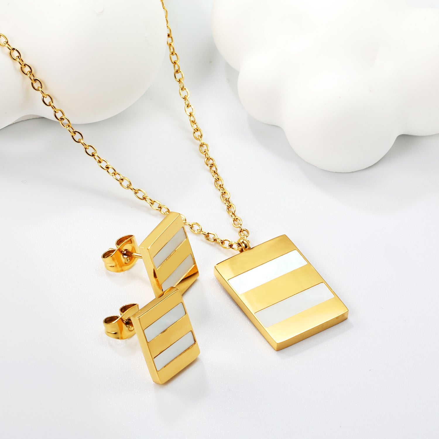 Rectangle Sticky White Shell Set Steel/Gold Earrings:9*12mm Pendant:13.5*18mm 04 Cross 45+5cm+6mm Round Plaque