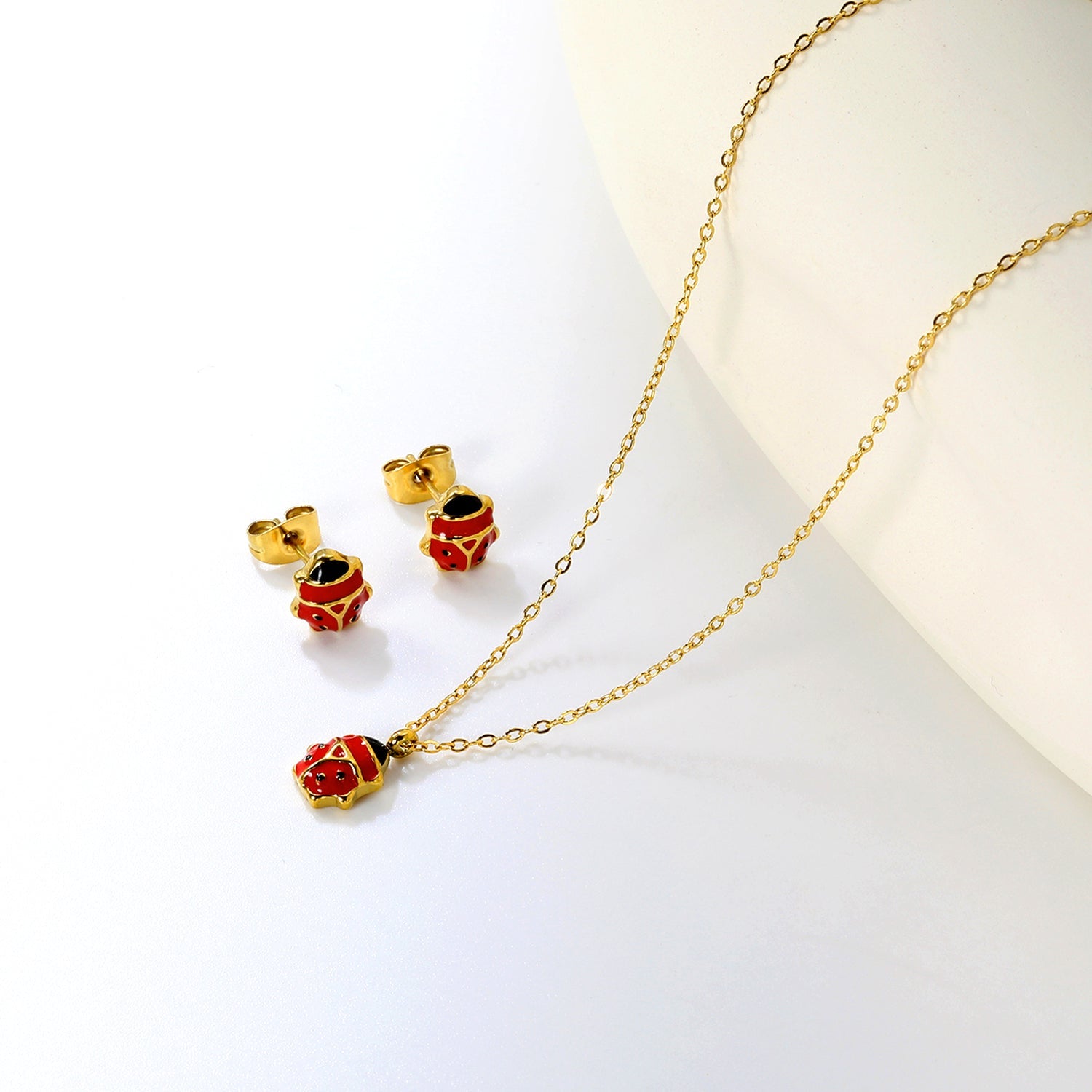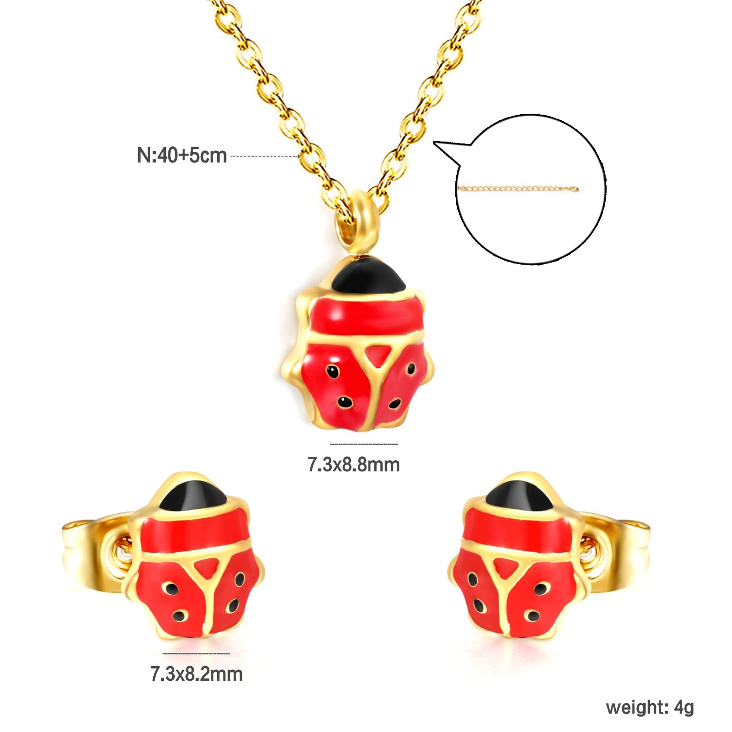 Seven star ladybug set Steel color/golden earrings: 7.3*8.2mm Pendant: 7.3*8.8mm0.3 Cross chain 40+5cm+6mm round plate