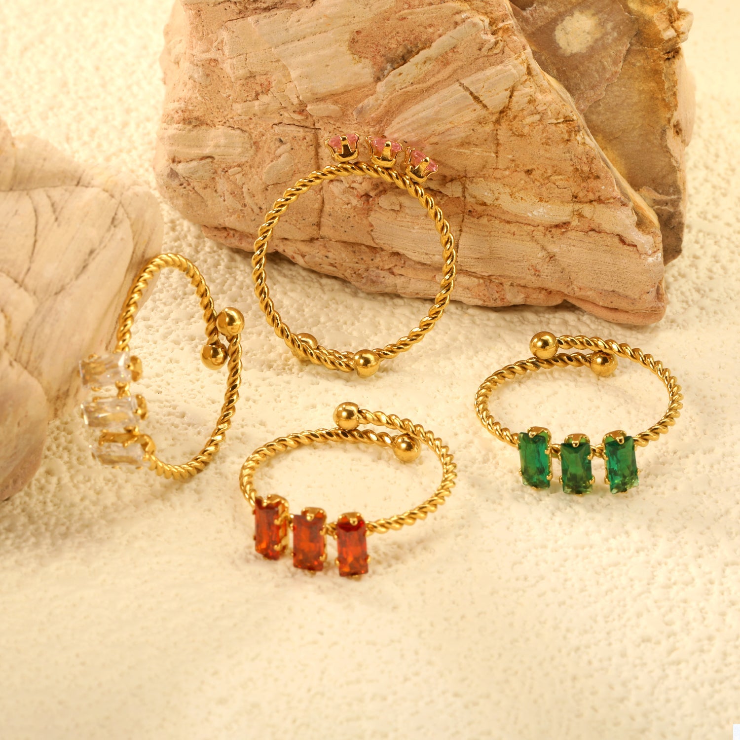 Experience the beauty and luxury of our Tall 6.6mm loose twist ring. Crafted with zirconium in striking white, garnet, pink, and emerald tones, this ring is guaranteed to make a statement. The tall 6.6mm design adds a touch of sophistication, while the elegant twist detail adds a unique and modern touch. Elevate your style with this stunning gold-colored ring.