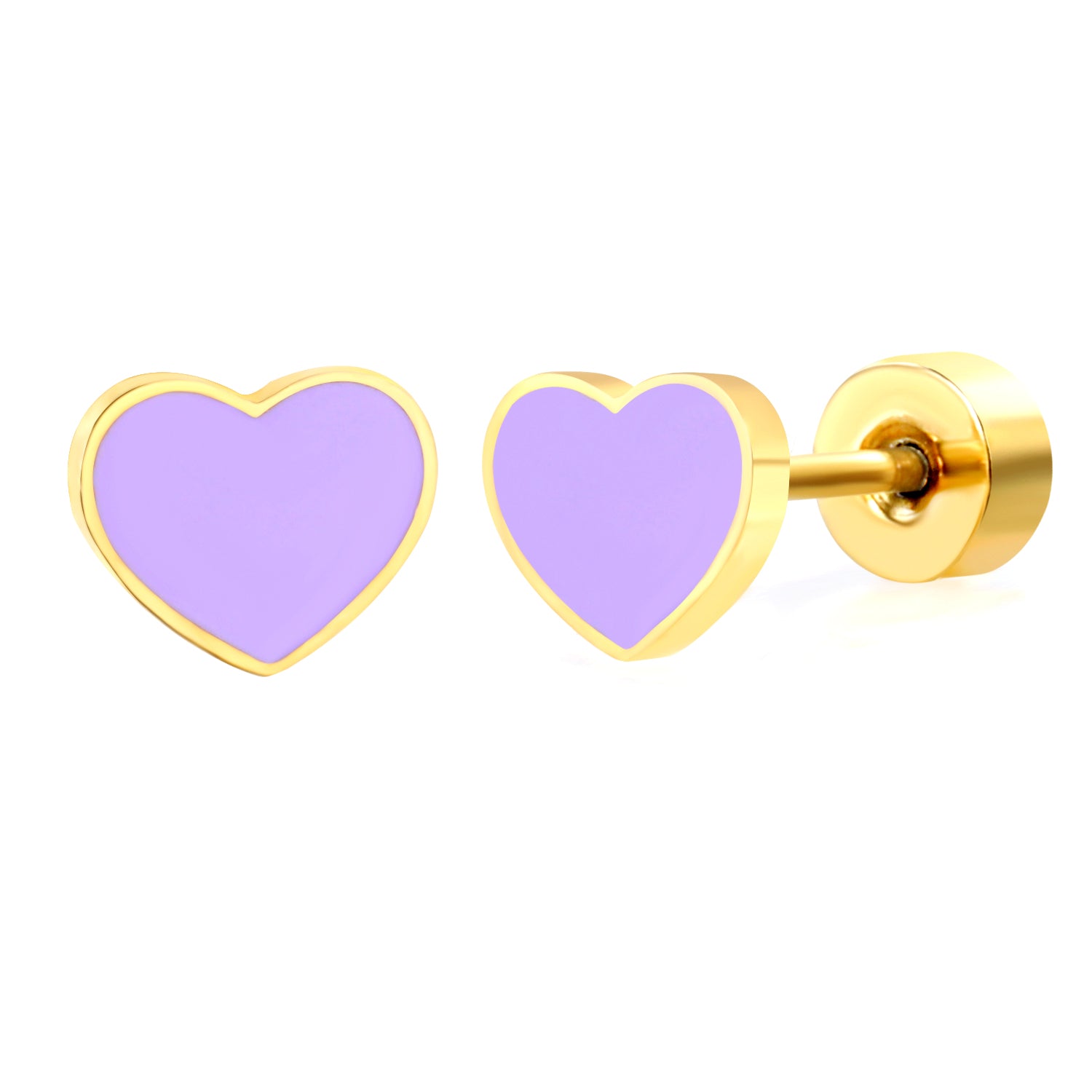Thick 1.2*5.9*4.9mm heart shaped purple/rose/cyan oil drops 0.8*9mm pin Screw-on earrings Gold color